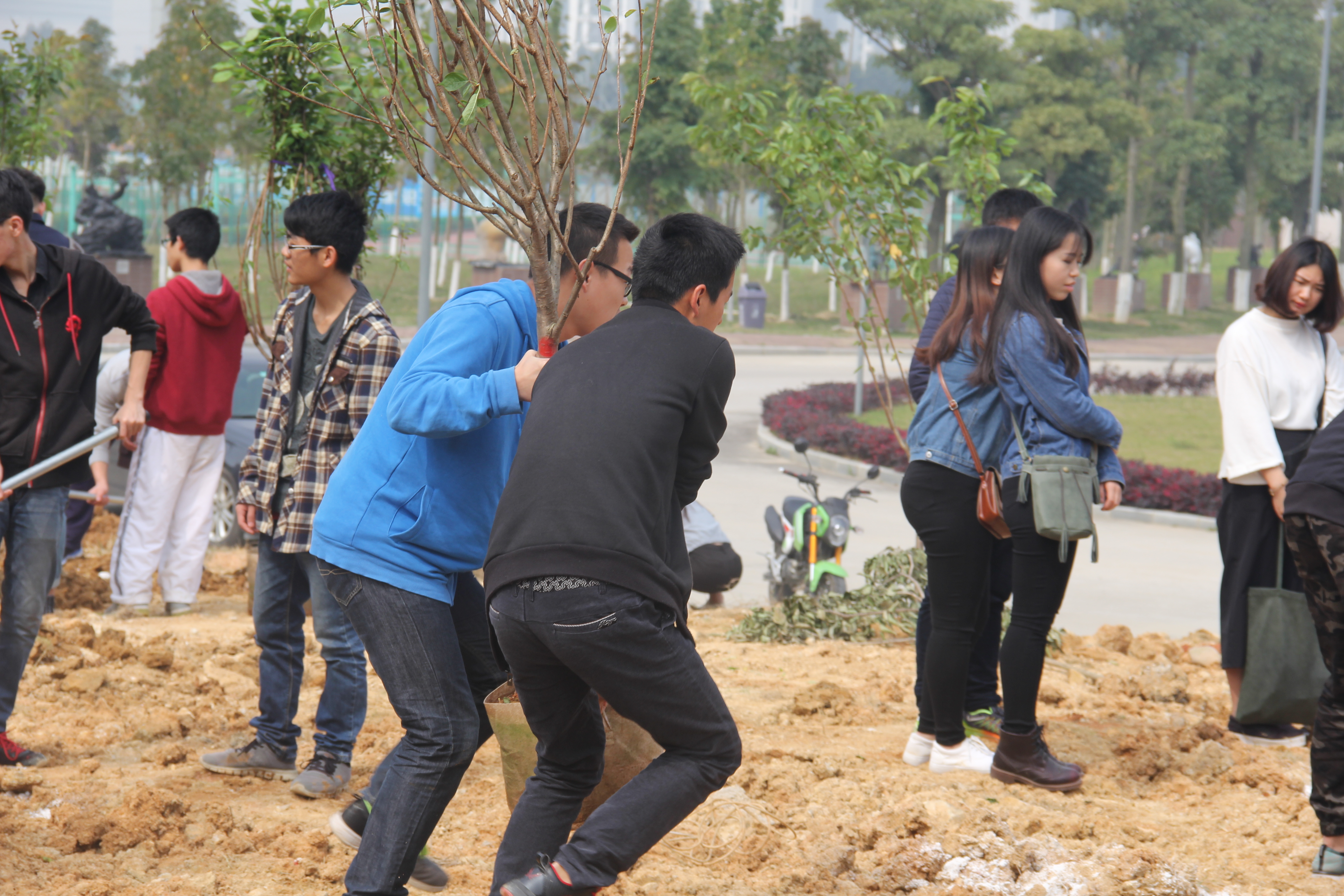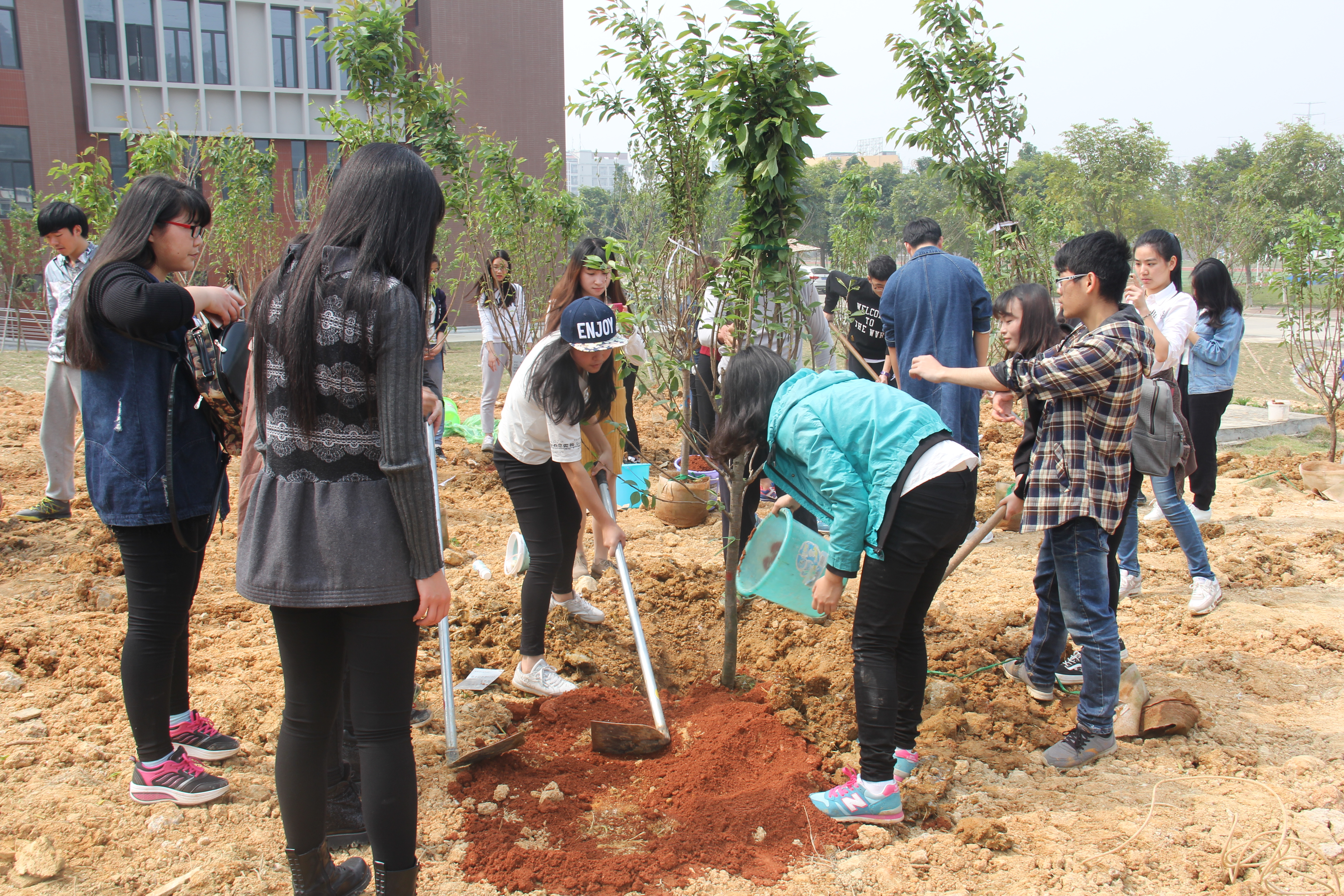 此次活动,由院团委和工会联合发起,学院师生踊跃参与募捐,共筹集到120棵樱花树种。植树活动中,师生们积极参与,挖土、栽种、浇灌,一片热火朝天的景象。新种下的樱花树,在明年春天到来时,将会成为一道美丽的风景,为校园增添生机与活力。