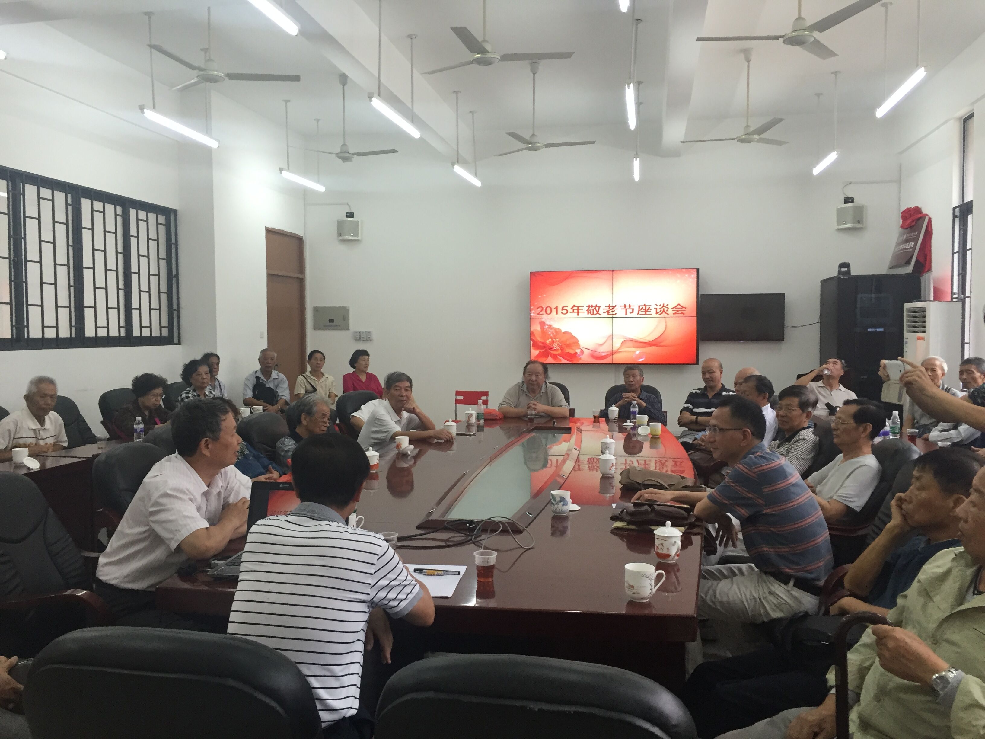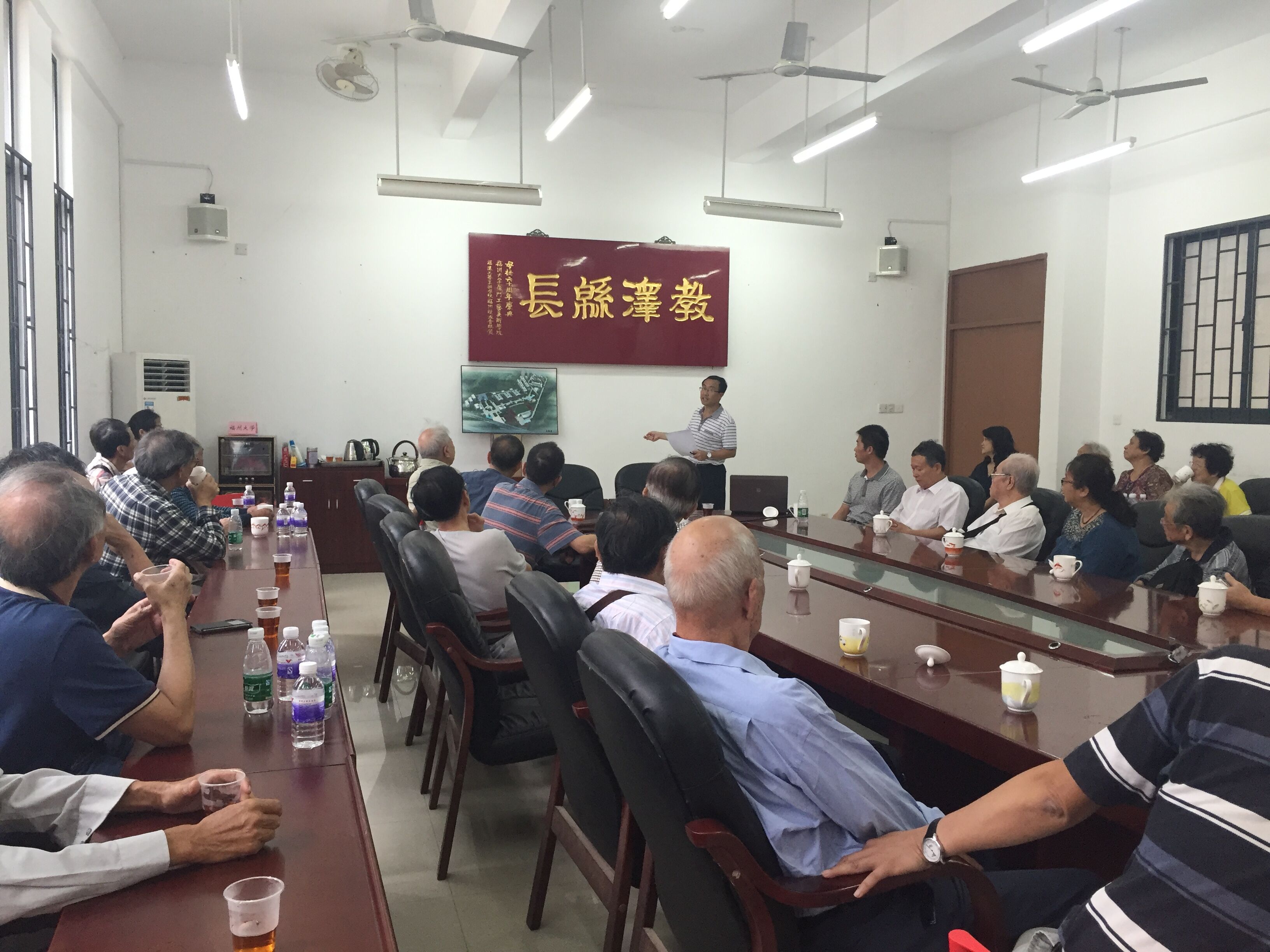 离退休教职工应院领导邀请到集美新校区进行参观、座谈。学院党委林键书记、郑顺利副书记、林旭副书记、佘国富副院长、吴绍兰副院长、陈友金副主任等热情接待了老教师,令他们倍感亲切、温暖。