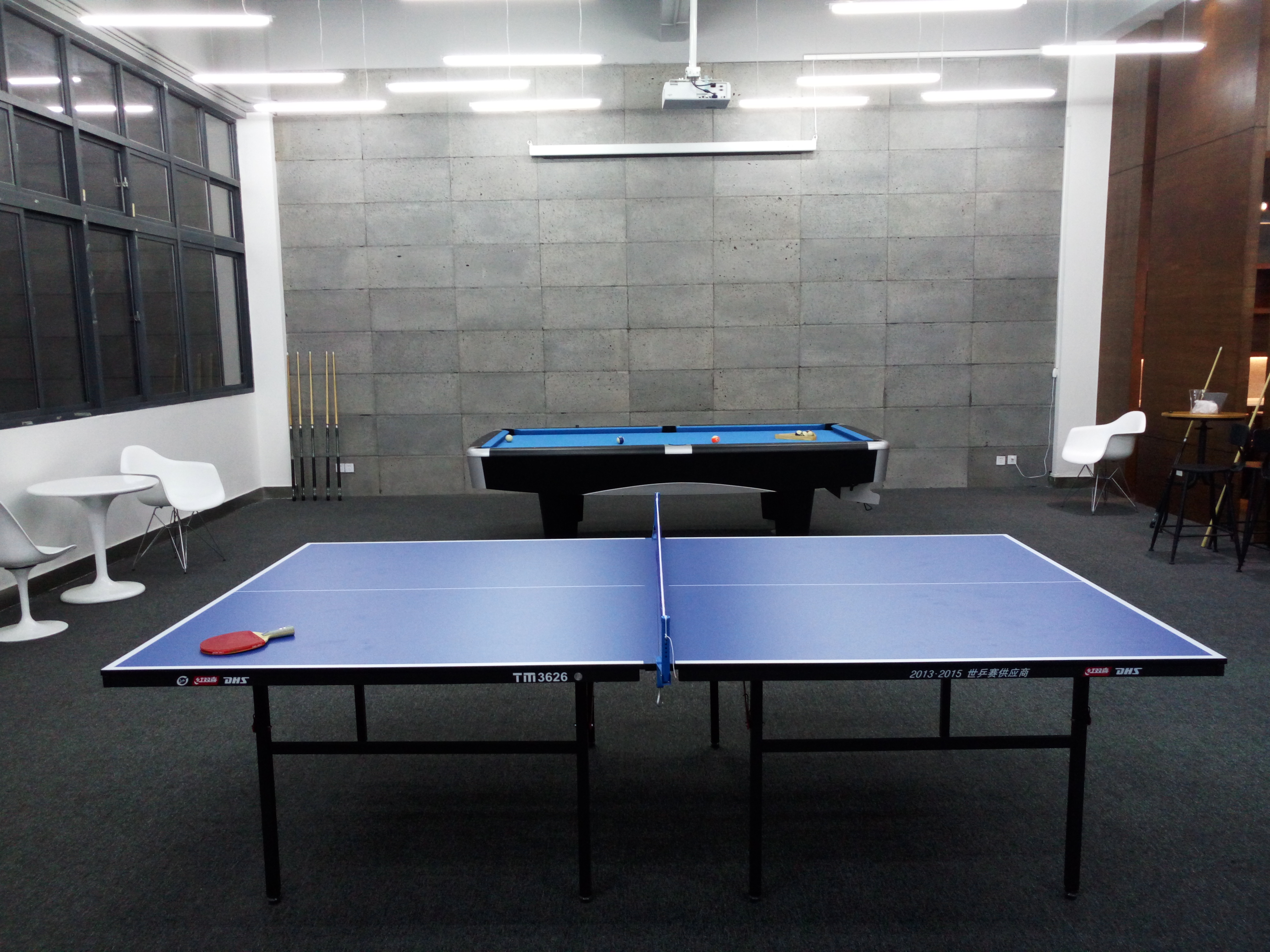 在270平方米的“教工之家”里,开设了体育活动室和会客室,不仅有议事桌、雅座、休闲吧台等办公议事、休闲放松的功能性设施,还有桌球台、乒乓球台、投影仪等体育娱乐设施,伴着茶水、咖啡的氤氲香气,活动室呈现出温馨、轻松的氛围,让教职工在辛勤工作之余放松身心,劳逸结合。开放当天,老师们下班后纷纷来到活动室体验各种设施服务,不断有老师称赞道:“这才像个家”。