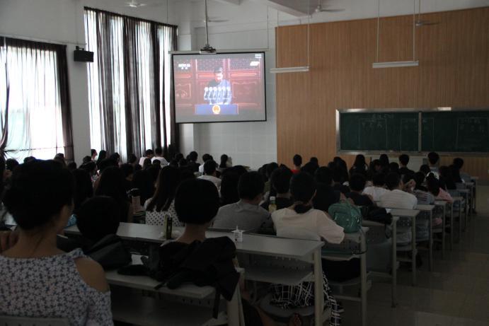 组织老师和各年级学生在2#教学楼211教室和食堂观看了此次大会。