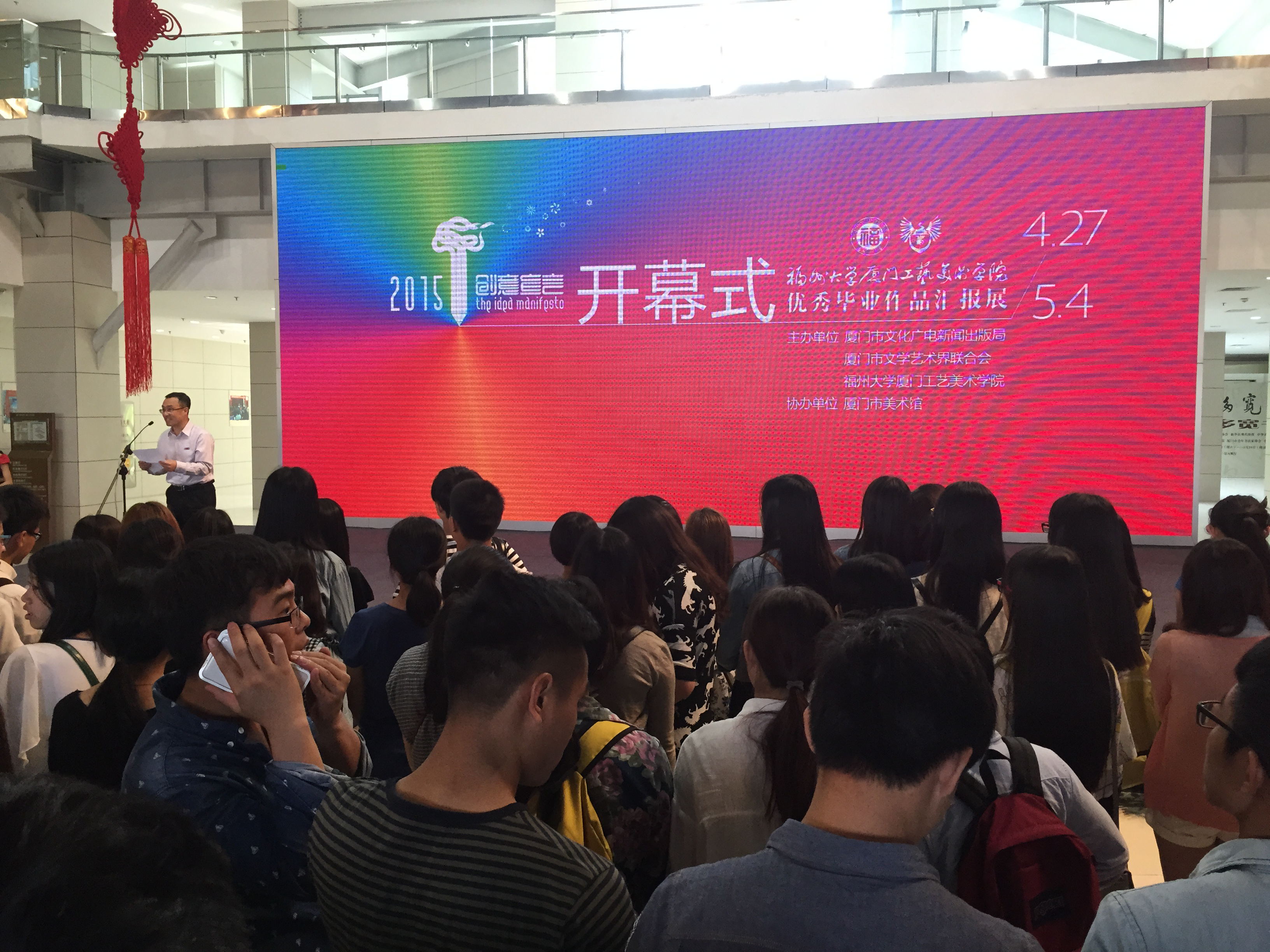 2015年“创意宣言”优秀毕业作品汇报展,在厦门市美术馆隆重开幕。厦门市美术馆陈娟馆长、厦门市新闻媒体朋友、优秀校友代表、全院师生共同出席了开幕式。开幕式由院党委林键书记主持,陈娟馆长和学院林志强院长分别致辞。
