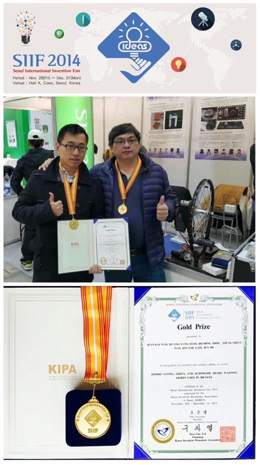 数媒系林建德教授和何俊博士的作品《Effort Saving, Green, And AutoMatic Brake Warning Lights Used In Bicycle》在众多参赛作品中脱颖而出,最终获得金牌大奖。