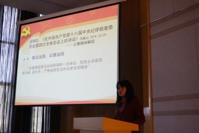 随后,吴绍兰教授对校纪委下发的学习材料做了概述,围绕深入开展党风廉政建设和反腐败斗争,全面推进依法治国,重点解读了《在中国共产党第十八届中央纪律检查委员会第四次全体会议上的讲话》(王岐山,2014.10.25 )、省纪委 “五个严禁”要求以及《肉漫