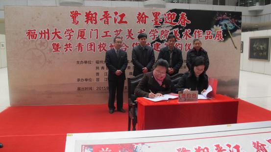厦门工艺美院美术作品展开幕式暨共青团校地共建仪式在晋江图书馆举行,晋江市委常委、总工会主席张文贤、肉漫