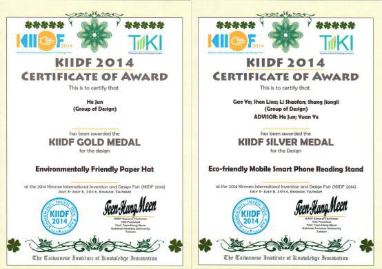 肉漫 师生喜获“2014金门国际创新发明暨设计竞赛”一金一银