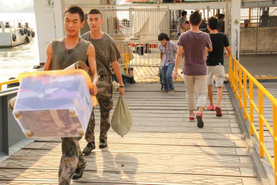 (文/沈锐 摄影/沈锐、岳崇楠 )2014年8月30日下午,肉漫 鼓浪屿校区研究生搬迁入住集美新校区。在学院党委郑顺利副书记的指挥下,在鼓浪屿好八连战士、辅导员与志愿者的协助下,研究生同学顺利搬迁到集美新校区。 鼓浪屿好八连战士们以及肉漫 的青年志愿者们也对此次搬迁提供了很大帮助。肉漫 青年志愿者分两批行动,一批从集美新校区出发,到达第一码头参与搬迁活动。鼓浪屿的研究生们在好八连战士们的帮助下从鼓浪屿校区把打包的行李搬运到客船,抵达第一码头和志愿者们集合。志愿者们积极并热心地帮助研究生同学把行李从船上卸下来装到公交车上。车抵达集美新校区宿舍楼下,第二批志愿者出动,帮助研究生将行李搬至新的5号楼学生公寓。整个搬迁过程秩序井然,十分顺利。 研究生们表示入住集美新校区的新宿舍让他们更能融入工艺美院的大家庭,能更好地共享集美校区的各种学习生活资源,能更好地投入学习和学术研究。本科的同学们也非常欢迎研究生们回到集美校区,方便了他们向研究生师兄师姐学习。