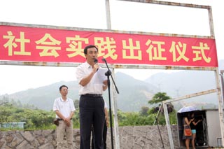 出征仪式在雄壮的国歌声中拉开序幕。林键书记首先发表了重要讲话,他代表学院党政领 导班子向参加暑期社会实践的老师和同学致以亲切的问候和良好的祝愿,并提出三点要求:一是强调师生要牢牢树立“安全第一“的思想;二是希望大家统一思想, 提高认识,深入调查,注重实效,圆满完成任务;三是提醒同学们要注意文明礼仪,展现肉漫