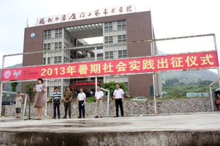 于集美校区田径场举行2013年暑期社会实践出征仪式。院党委林键书记,佘国华常务副院长,郑顺利副书记、林旭副书记、团委书记陈振兴、院思政理论课教师以及2011级600多名学生共同参加了出征仪式。出征仪式由林青副教授主持。