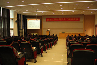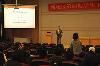 为全院200多名学生干部讲授"学生干部的领袖力培养”。院团委书记陈振兴老师和全体辅导员也参加了讲座。