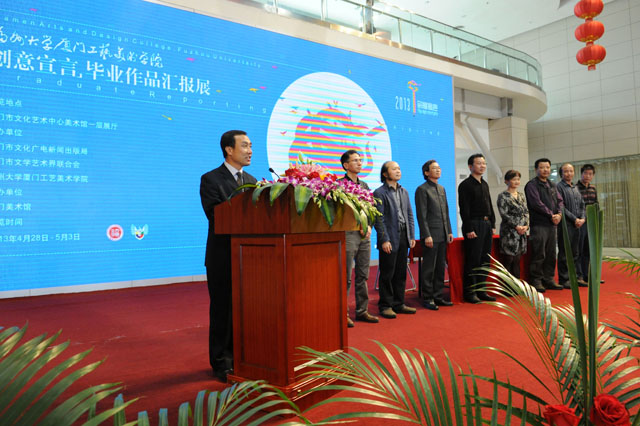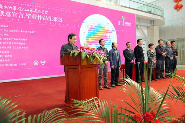 “创意宣言.毕业作品汇报展”在厦门市文化艺术中心美术馆隆重开幕。厦门市文化广播新闻出版局黄天福处长、厦门市美术馆副馆长陈娟女士、厦门市美协副主席陈鑫先生、厦门市新闻媒体朋友、优秀校友、学院退休教师以及全院师生共同参加了开幕式。开幕式由学院党委书记林键主持。学院院长林志强教授致辞。