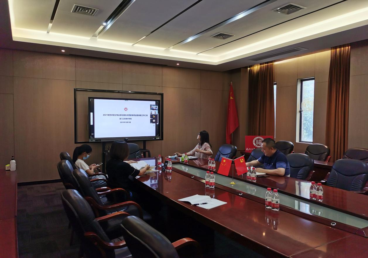在迎接艺术硕士专业学位授权点质量巡查工作的组织与实施、资料准备等情况向研究生院领导作了详细汇报。研究生院领导就学院对迎接专项巡查工作的准备情况给予了高度肯定,同时也提出了工作要求:一要提高思想认识,加强组织领导。艺术硕士专业学位授权点质量专项巡查工作是国务院学位办组织实施的一项年度重点工作,是对各学校艺术硕士专业学位授权点建设质量与水平的一次全面检验,要统一思想,高度重视,提前谋划,积极准备,切实将专项巡查工作责任落实到岗,细化到人。二要周密部署,密切配合。要围绕艺教指委有关艺术硕士专业学位研究生指导性培养方案和本次巡查的通知要求,以及学校研究生教育改革发展的全局,各负其责,协同配合,以饱满的精神状态和扎实的工作作风积极做好迎接专项巡查各项工作。三要将以评促改、以评促建、评建结合的原则落到实处。