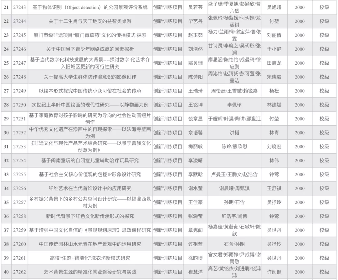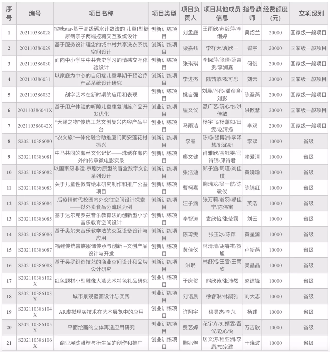 2021年国家级、省级大学生创新创业训练计划立项项目