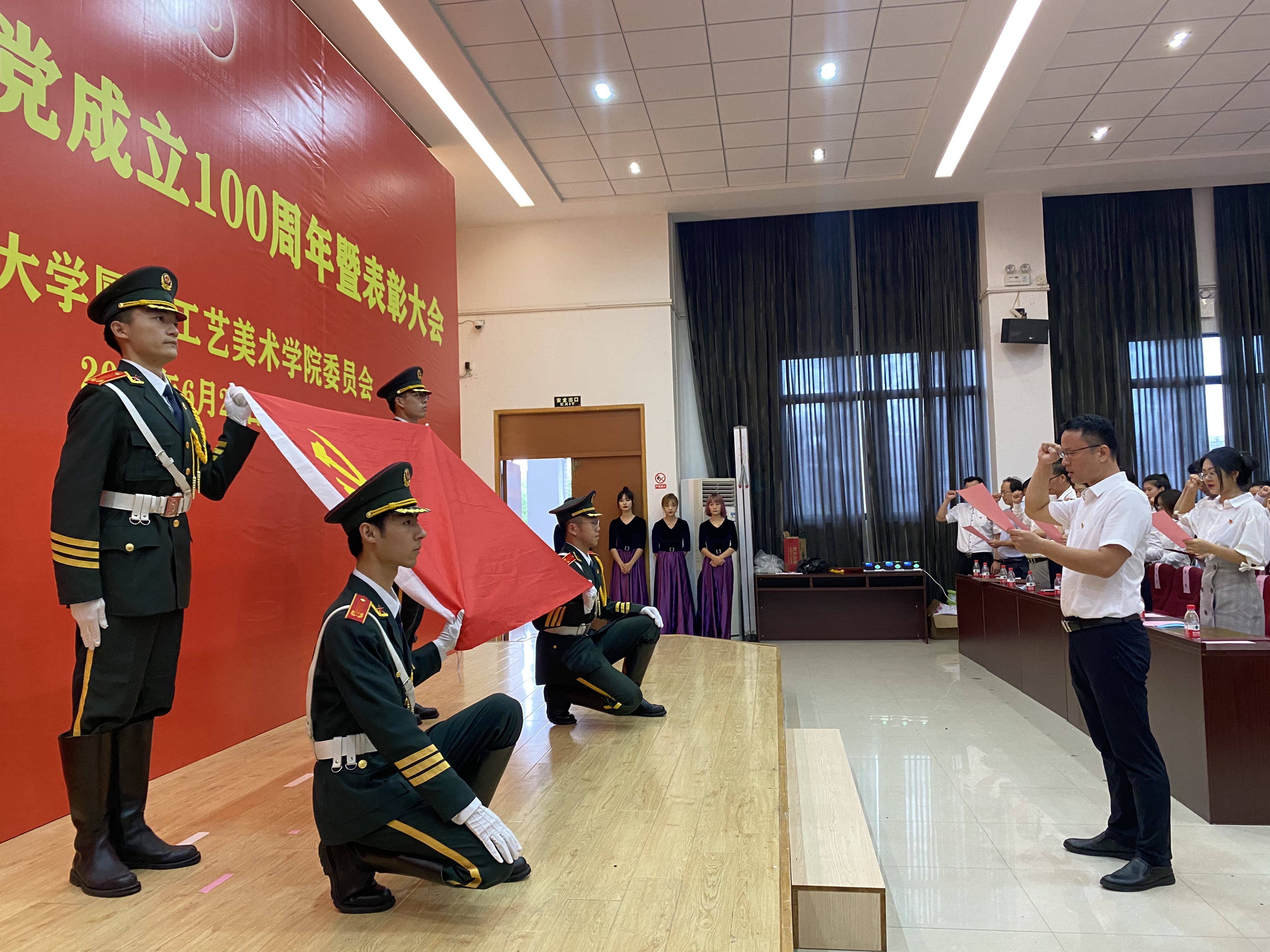 李礼建书记号召,全院师生要高举习近平新时代中国特色社会主义思想伟大旗帜,紧密团结在以习近平同志为核心的党中央周围,不忘初心,牢记使命,攻坚克难,砥砺前行,以高质量党建引领高质量发展,全力推进学院“双一流”建设,朝着建设“亚洲知名、国内一流,以传统工艺美术与现代创意设计为特色的艺术学院”的目标奋勇前进,不断谱写学院党的建设和各项事业发展的新篇章,以更优异成绩庆祝中国共产党成立100周年,为实现中华民族伟大复兴的中国梦做出无愧于时代的新的更大贡献。