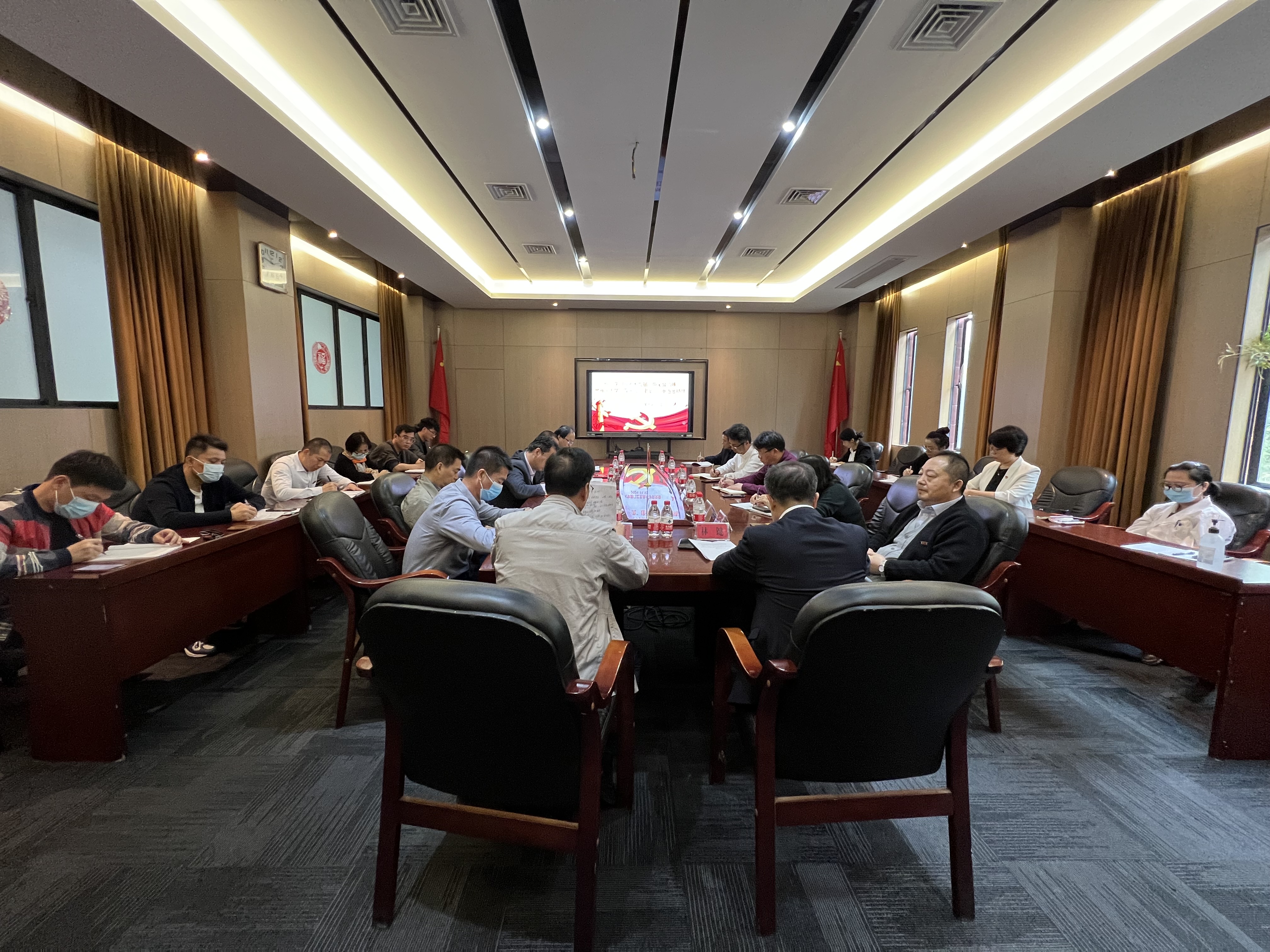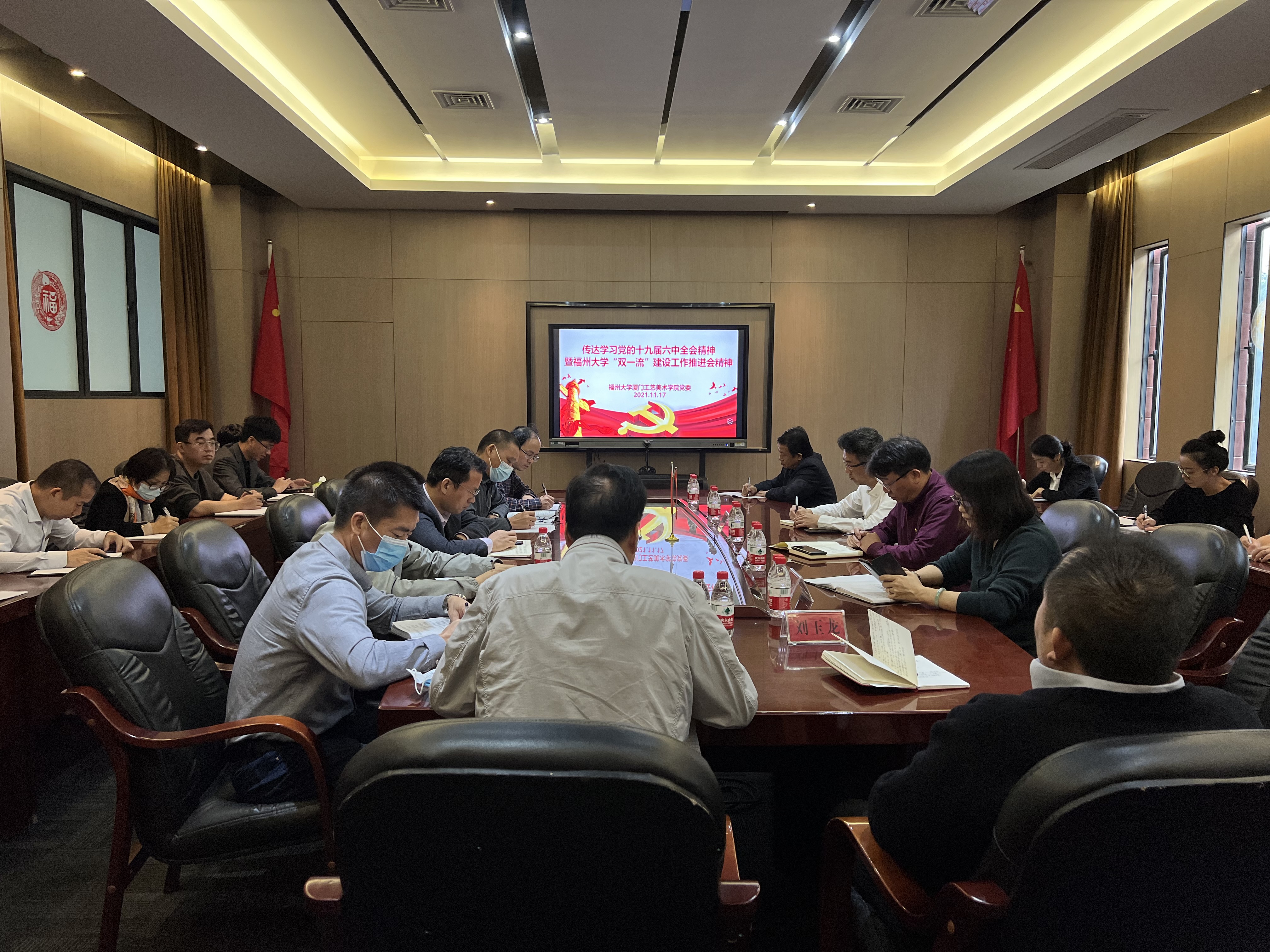 “双一流”建设工作推进会精神,研究部署学习贯彻意见。学校林键副校长到会指导。学院党委李礼建书记传达了党的十九届六中全会精神以及学校党委常委会(扩大)会议要求,并就贯彻落实全会精神和学校“双一流”建设工作推进会精神作了讲话。学院党政领导、党委班子成员、教工支部书记、机关科室负责人参加了会议。