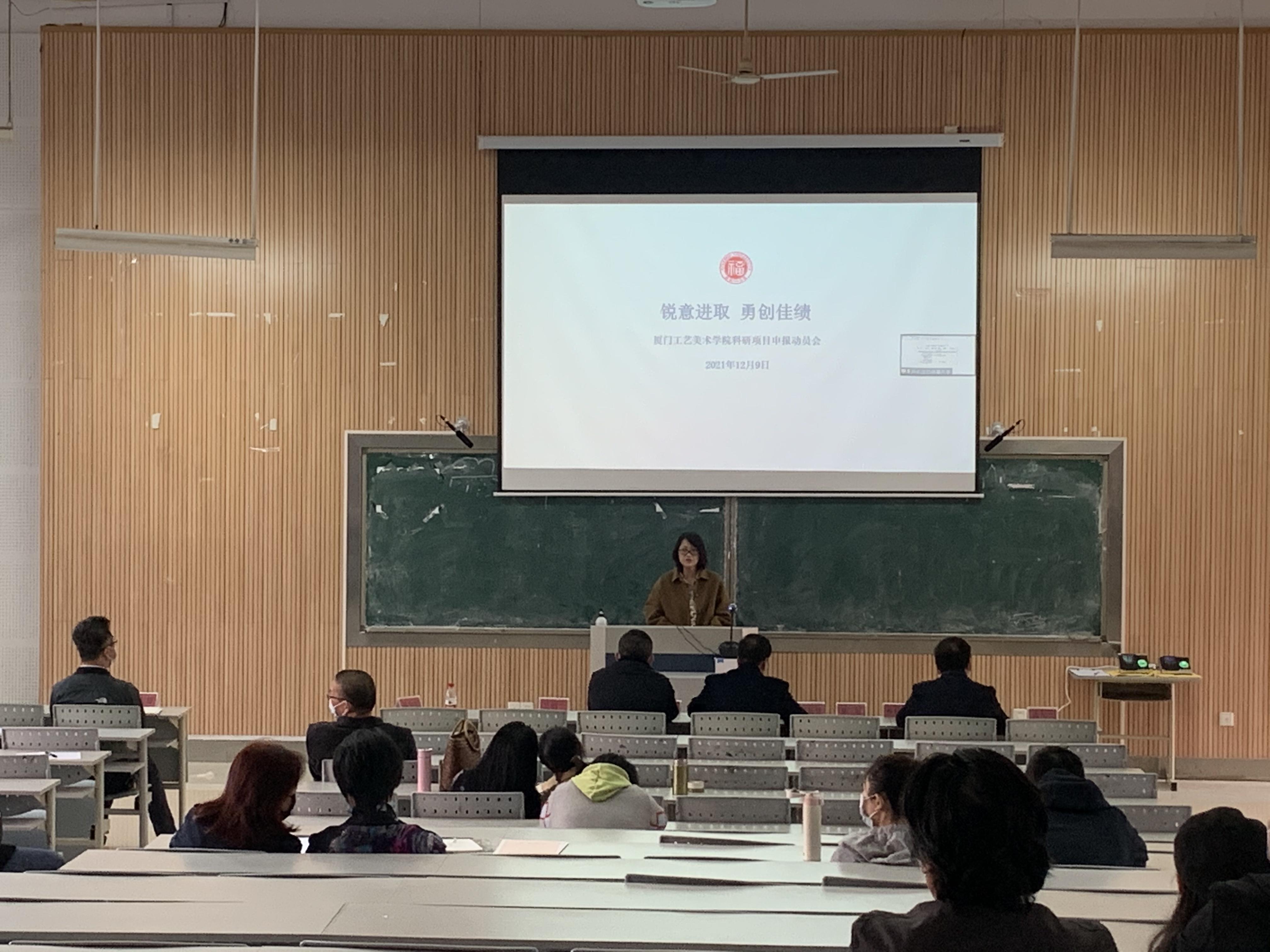 会上,吴绍兰副院长汇报学院“十三五”期间科研成绩和不足、学院“十四五”科研工作目标定位、思路和重要举措。近年来,学院提供多元的科研途径,不断激励教师们锐意进取、勇创佳绩。一是通过积极实施科研目标管理,强化教师科研工作责任意识;二是着力构建申报前和立项后双向激励机制,完成两个批次17个科研项目配套经费资助,配套经费近120万元;三是强化各类科研申报培训,利用鹭潮讲堂邀请国内资深专家学者开设项目申报辅导讲座,加深学院教师对科研项目申报认知。多措并举下学院科研成效持续稳步上升,2021年学院教师申报项目和成果人次显著增加,并在“十四五”开局之年赢得科研工作开门红——获批3项国家级项目(其中国家社科基金艺术学项目两项、国家社科基金面上项目一项)、1项教育部人文社科项目、5项省社科以及1项科技厅项目,在国家级项目和总体项目数量、质量上均创历史最好水平。