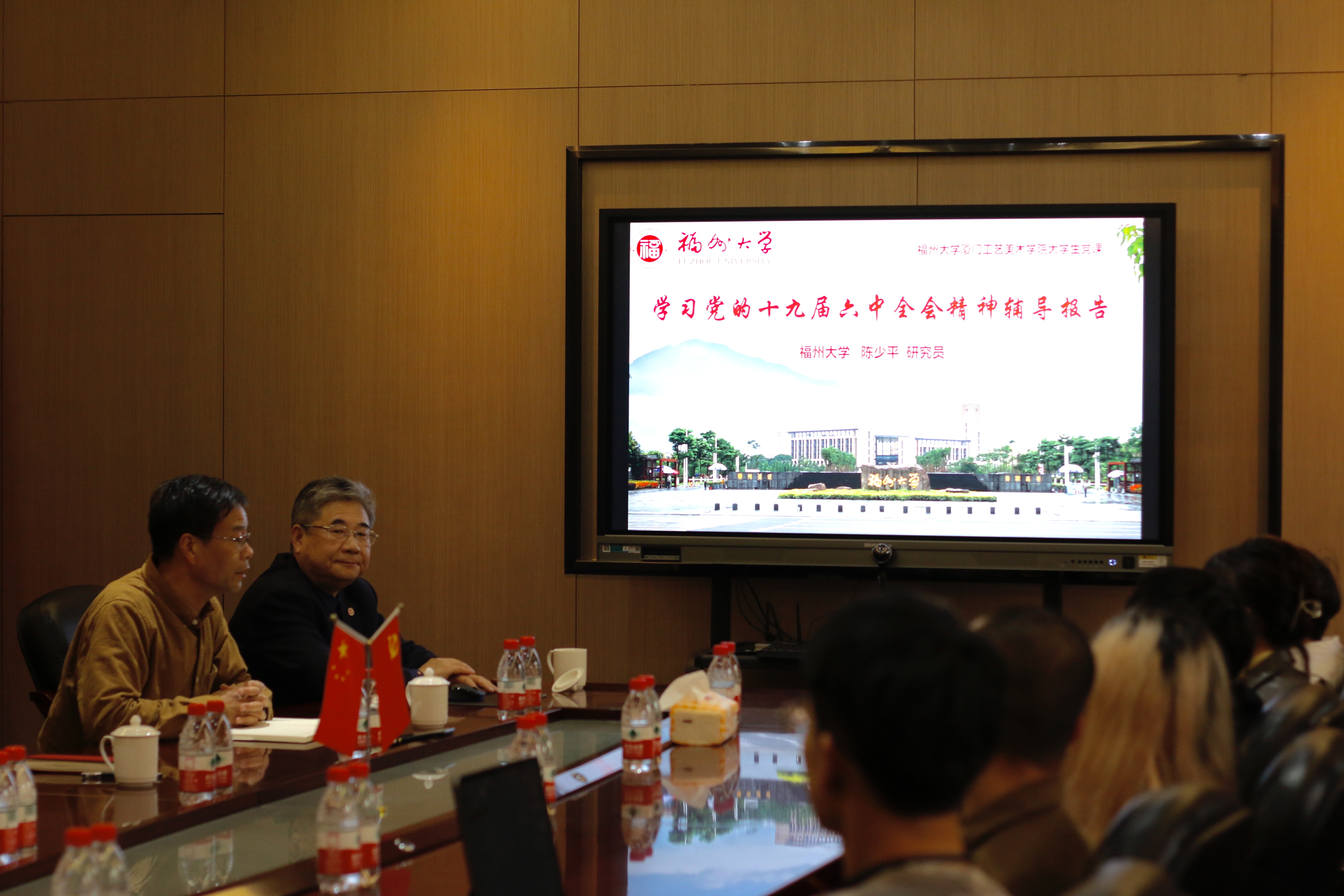 调研关工委工作。学院党委书记、关工委主任李礼建副教授,关工委常务副主任黄国维老师,学院党委副书记、关工委副主任林旭副研究员和学院党委委员、团委书记、关工委秘书长陈振兴老师参与调研。