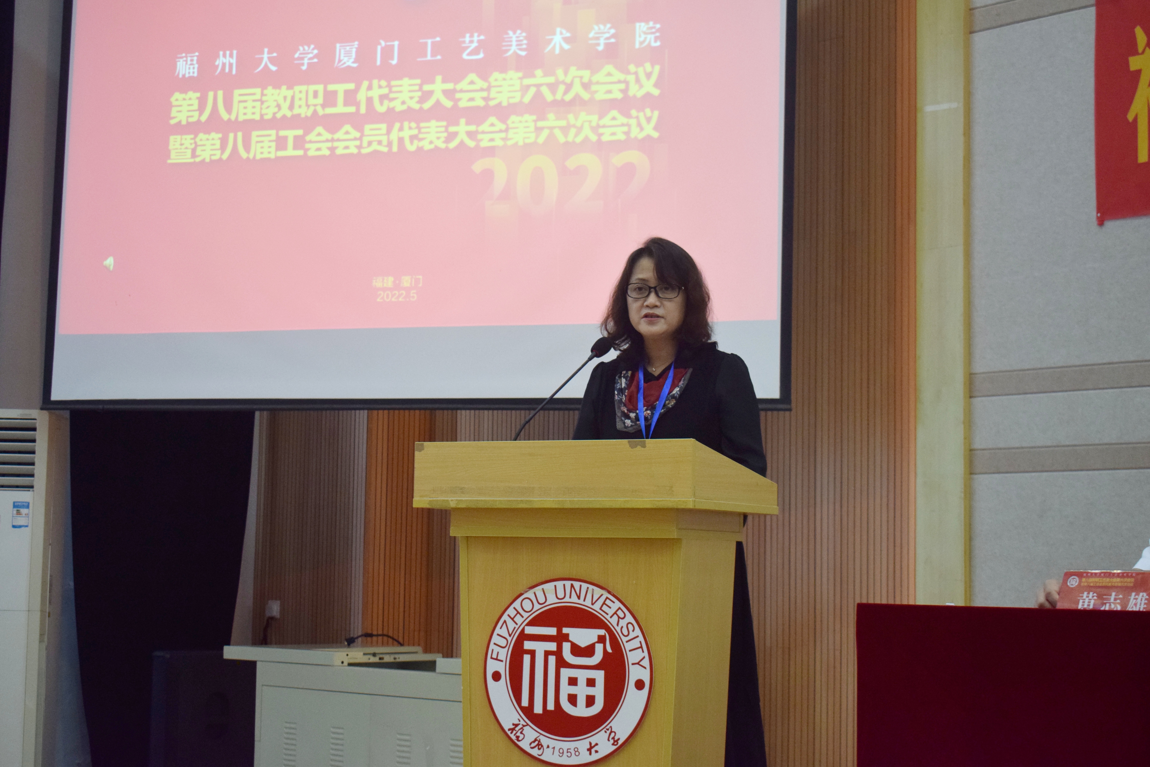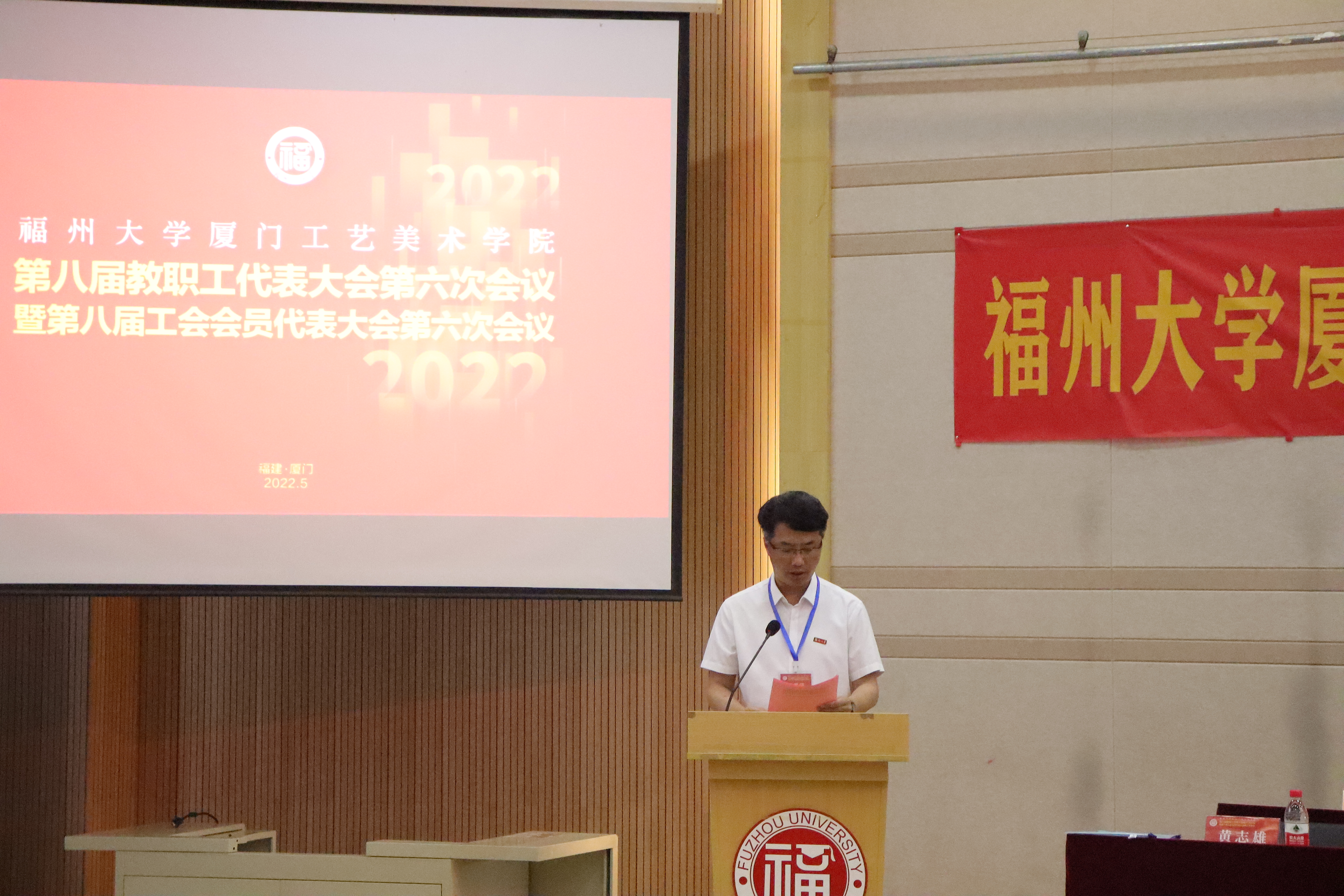 学院工会黄志雄主席作了学院工会工作报告,对2021年学院工会工作进行总结,并提出2022年工会工作要点,将坚持党的领导,同频共振汇聚教职工强大合力投身学院新一轮事业发展;强化法治意识,久久为功推动学院民主管理和教职工维权服务效能提升;聚焦主业主责,守正创新助推学院发展和服务教职工方面贡献工会力量;加强自身建设,固本强基提升工会工作法治化、制度化、规范化水平。