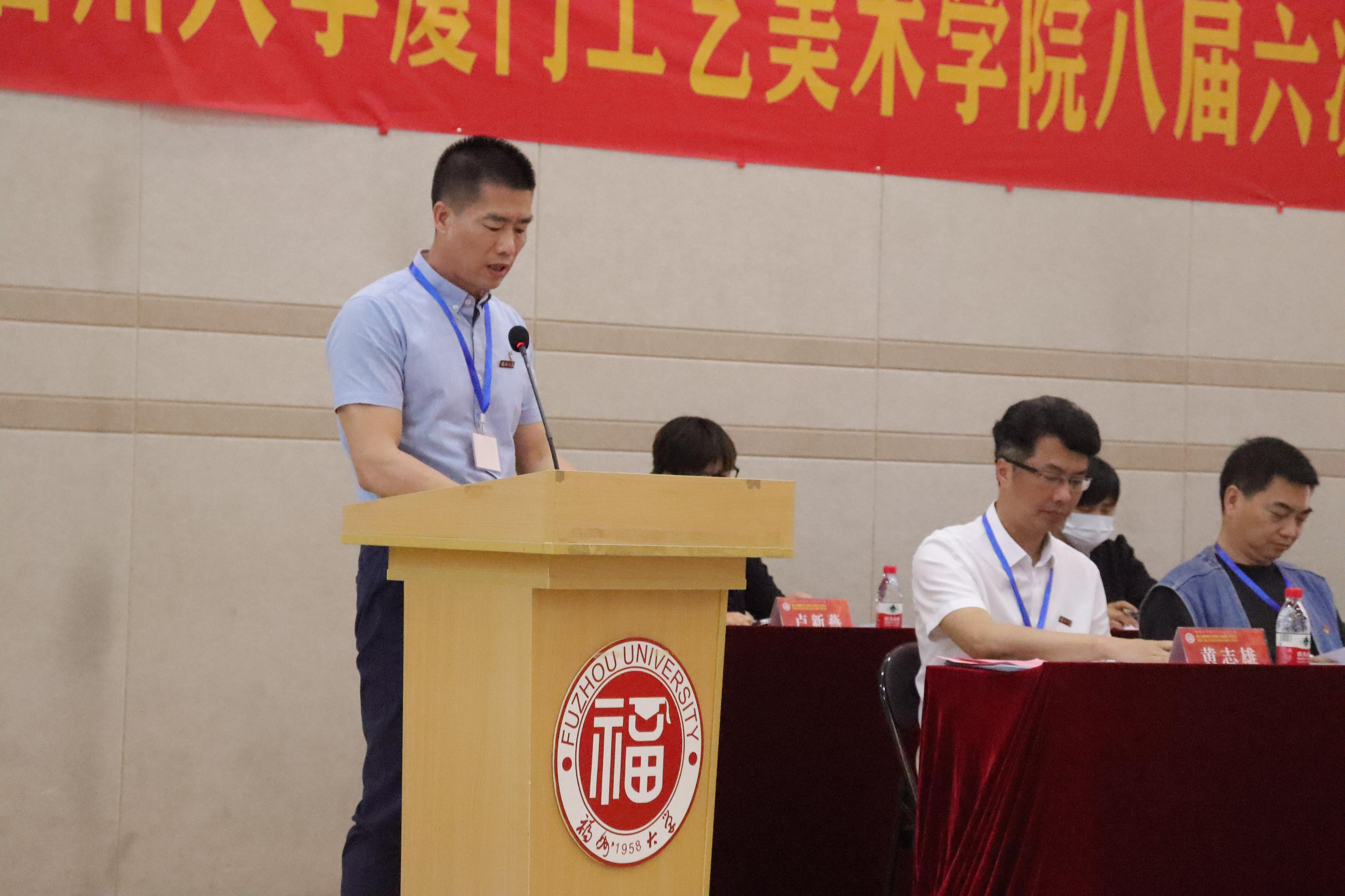 最后,院党委李礼建书记致闭幕词,代表学院党委,向大会筹备工作人员和全体代表,以及为学院建设发展付出辛勤劳动的全院教职员工们致以由衷的谢意和崇高的敬意。并就进一步发挥教代会、工会的桥梁纽带作用,落实学院主要工作以及加快推进“双一流”建设提出了三点意见:一是围绕学院中心工作,统筹谋划发展大计;二是发挥工会职能作用,踔厉奋发开创新局;三是关心教职工合法权益,积极创建和谐平安校园。报告指出我们既要做好常态化疫情防控工作,又要奋力推进学院事业发展,努力提升学院治理体系和治理能力现代化,朝着建设“亚洲知名、国内一流,以传统工艺美术与现代创意设计为特色的艺术学院”的目标奋勇前进!