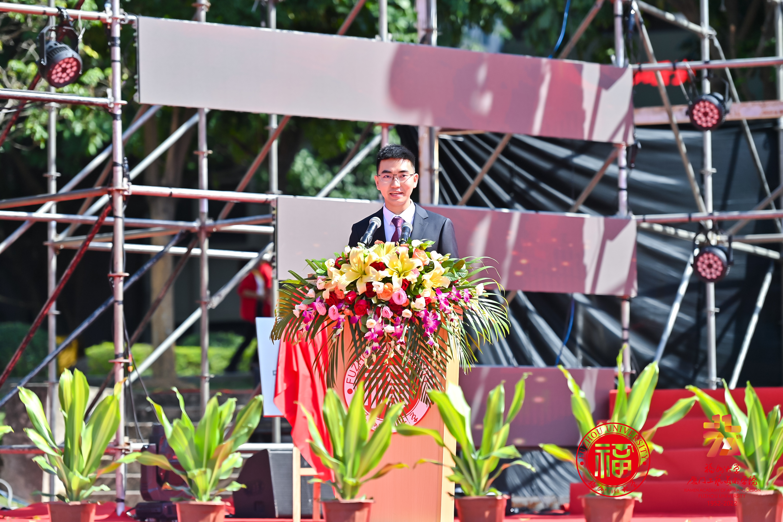 环境设计专业2019级本科生田璟淏同学作为学生代表发言。他代表全体在校的青年学子,对学院70周年院庆表示祝福。他表示,美院像一个包容的母亲,温柔地接纳着每一位学子。在这里,任课教师诲人不倦,辅导员老师悉心关怀,莘莘学子勤学奋进,黑天鹅楚楚可爱。在这里,学子们收获了鼓励、友谊和温暖,增长了学识、阅历和技能。这些成绩都来自老师们的悉心教导,是学院精神熏陶的结果。他指出,青年学子一定会珍惜机会,在开拓创新的美院勇攀艺术高峰,练就过硬本领,始终秉承“明德至诚,博学远志”的校训,坚定理想信念,努力成长成才,让青春年华在为国家、人民的奉献中焕发出绚丽光彩。