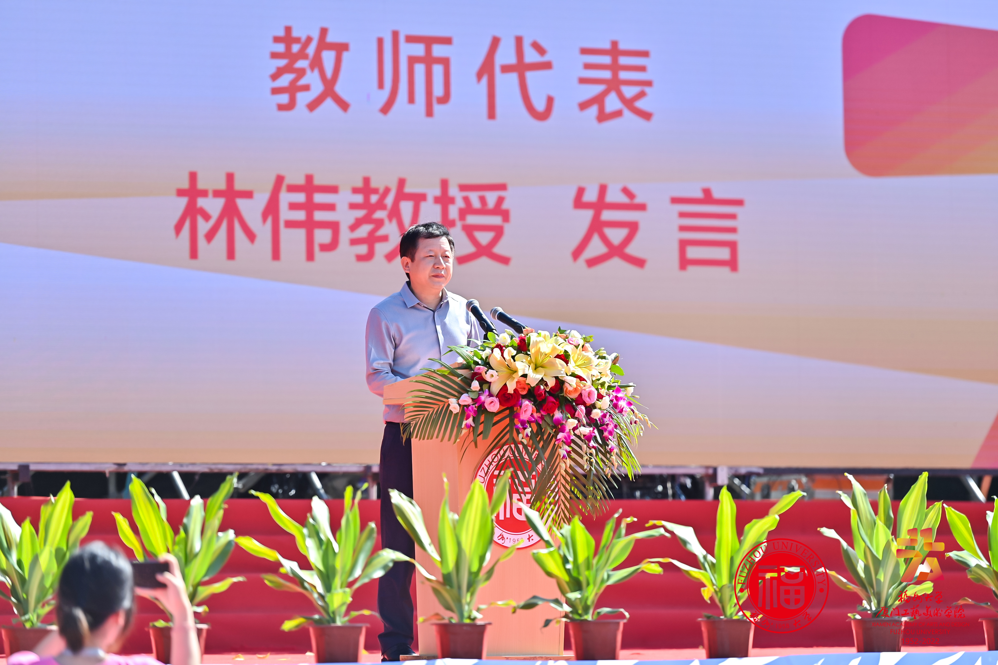 产品系主任林伟教授作为教师代表发言。他表示,七十年来,一代代美院人凭借着对教育事业的忠诚,以奋发图强的勇气、自强不息的精神,辛勤耕耘,为厦门、为福建、为国家培养了一大批优秀的专业人才,享誉海内外。在肉漫