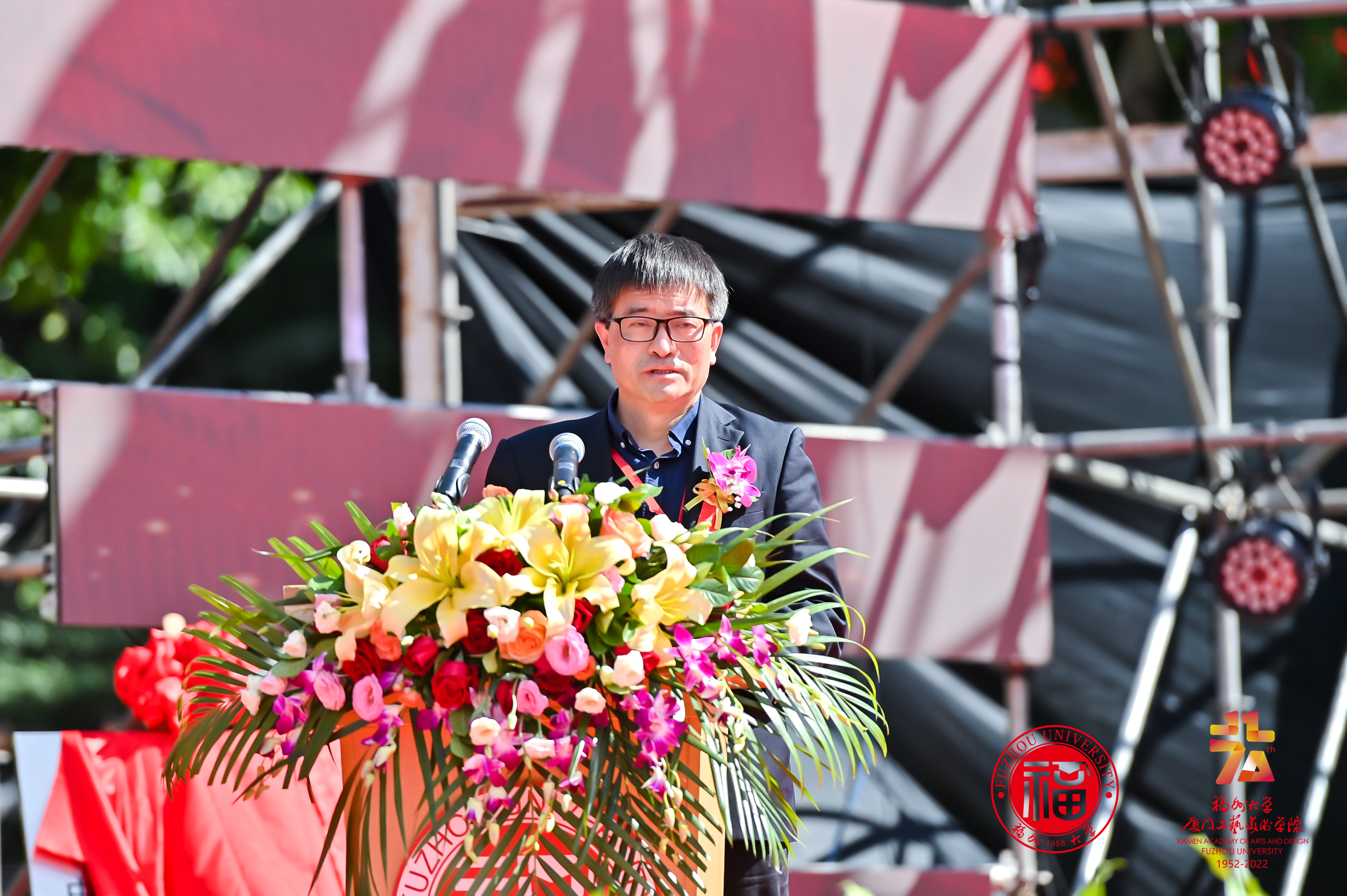 国务院学位委员会美术学学科评议组成员、厦门大学艺术学院院长刘赦教授代表兄弟高校致辞,对学院70周年华诞表示祝贺,对学院在专业和学科建设方面取得的成就给予积极的肯定和高度赞扬,并对学院的未来发展致以良好的祝愿。