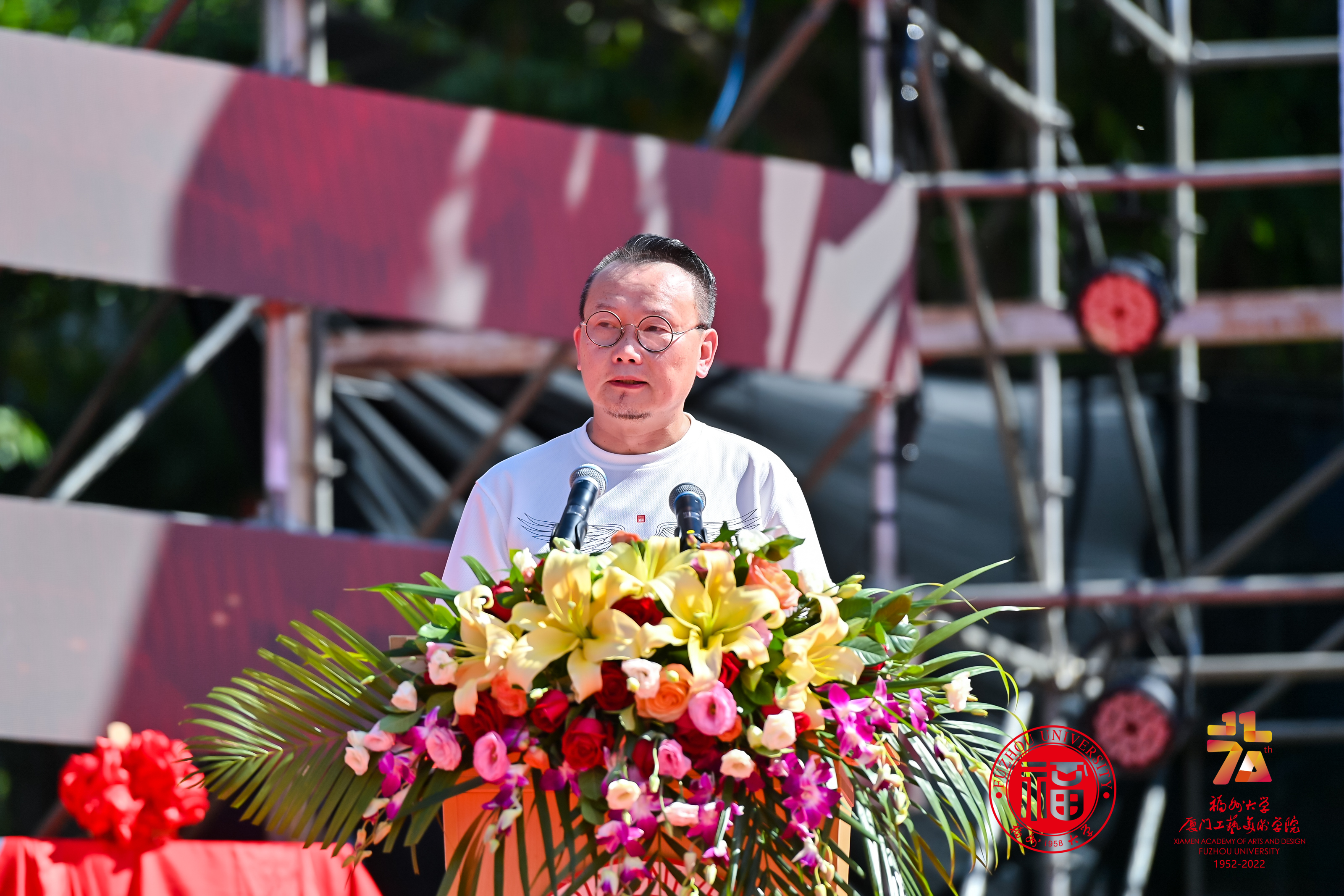 ,打开新的发展局面。他盛赞学院在人才培养、艺术创作、服务厦门经济社会发展等方面取得的成就。他指出,一代代美院人头顶星空、脚踏实地、肩扛使命、双手创造美,把作品和论文写在祖国的大地上。在深入学习贯彻党的二十大精神之际,希望学院守正创新、自信自强,更加深度融入厦门经济社会发展。厦门市政府将更加重视和支持学院发展,希望工艺美术学院与美丽厦门“各美其美、美美与共”,共同创造人民的美好生活。