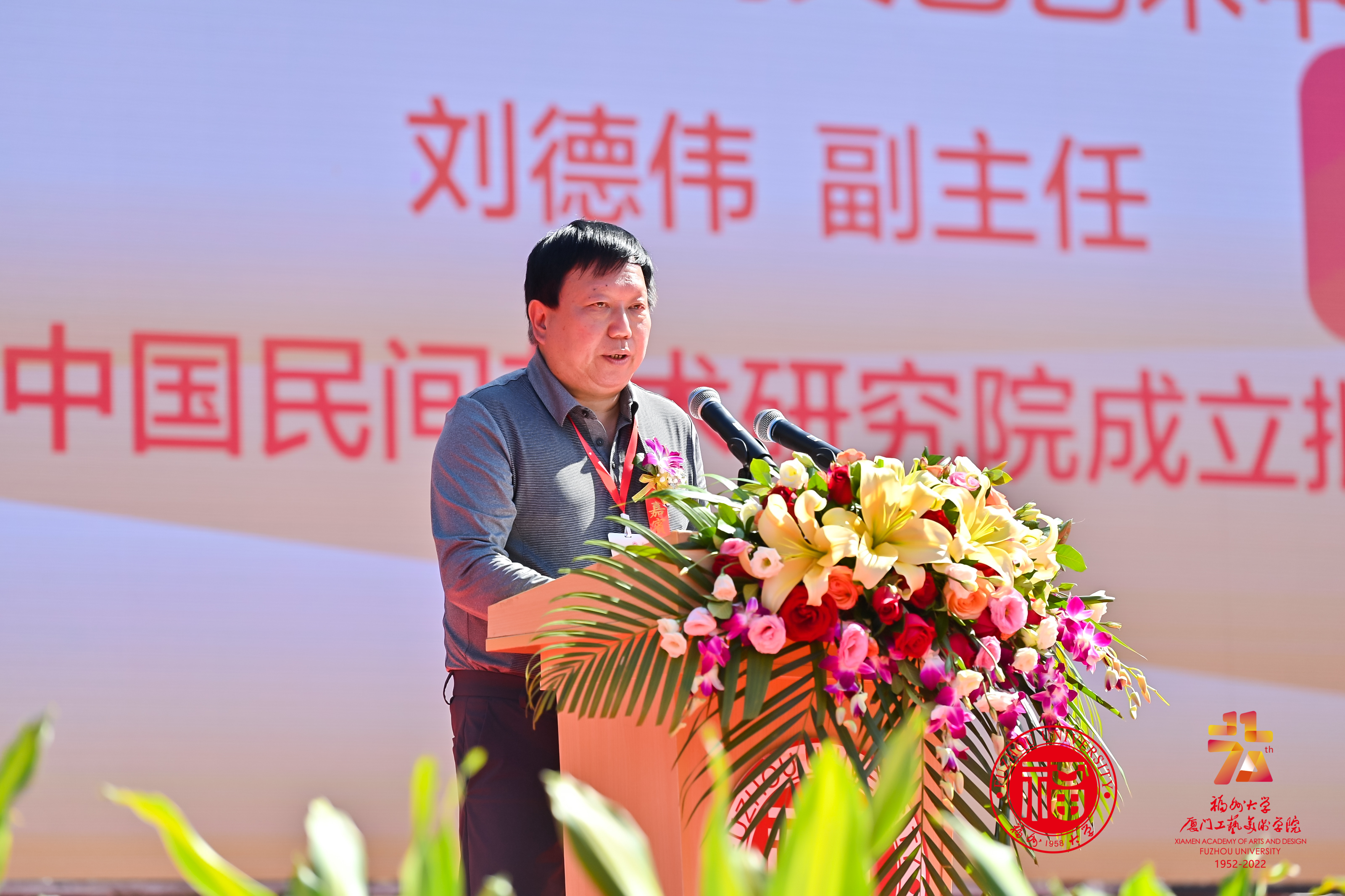 大会上,中国文联民间文艺艺术中心副主任刘德伟研究员宣读了《中国民间艺术研究院成立批复文件》,并举行揭牌仪式,中国民间文艺家协会分党组书记、驻会副主席邱运华教授、福建省美术家协会王来文主席、肉漫