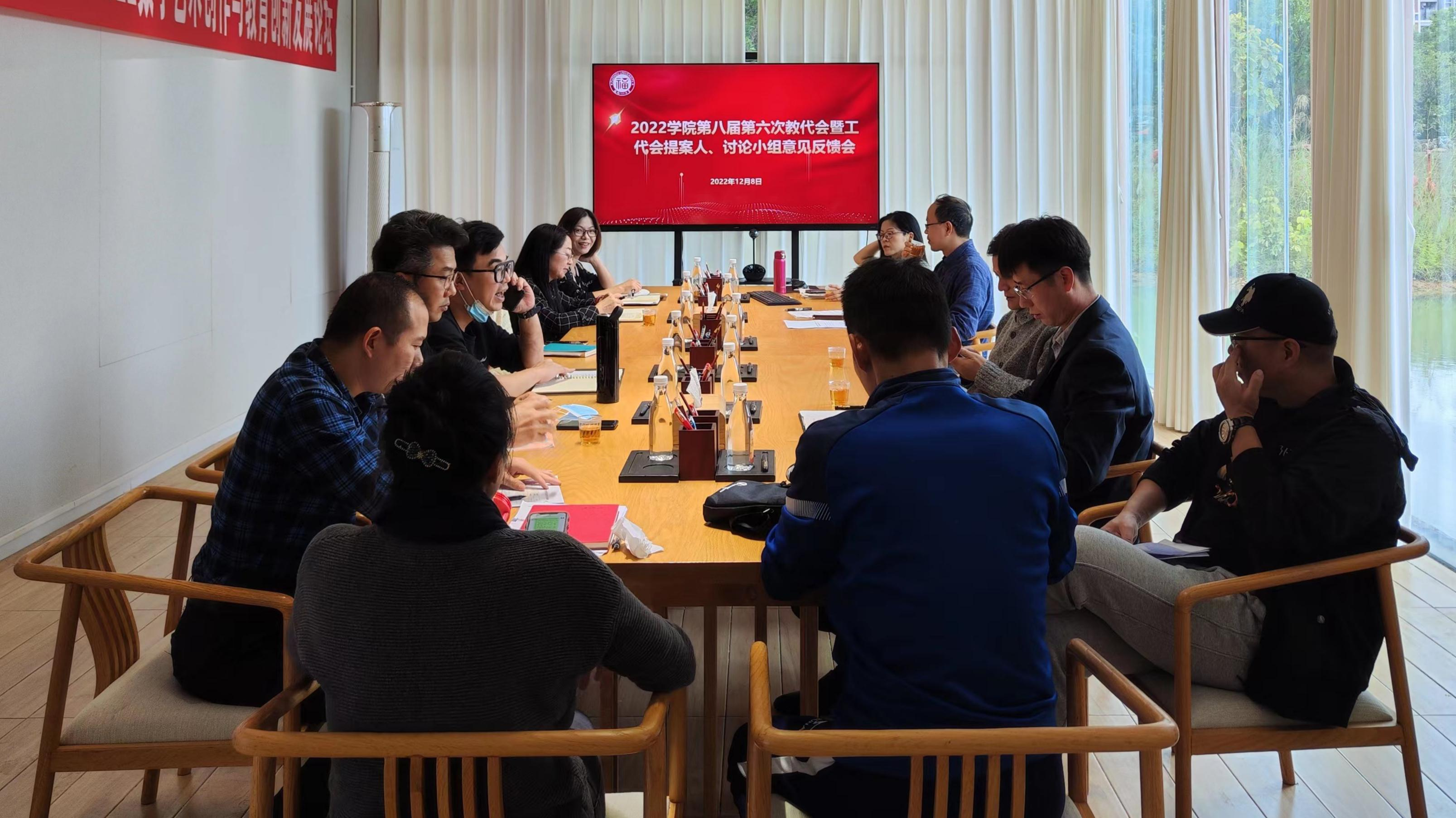 八届六次教代会暨八届六次工代会提案人、讨论小组意见反馈会于书瓦间召开,会议由党政办主任、提案组组长张友恭主持,学院副院长张健、院工会主席黄志雄、提案组成员、提案人代表、教代会各小组组长及相关科室负责人共20余人参加了本次会议。
