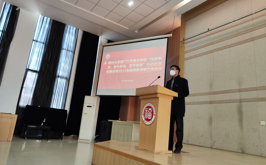 在2号教学楼311报告厅召开“深学争优、敢为争先、实干争效”动员部署会暨2023年春季新学期工作会议,深入学习贯彻党的二十大精神,传达学校“深学争优、敢为争先、实干争效”动员部署会暨2023年春季新学期工作会议精神,研究部署2023年学院工作工作。院党委书记李礼建主持会议并讲话,学院全体教职工参加会议。
