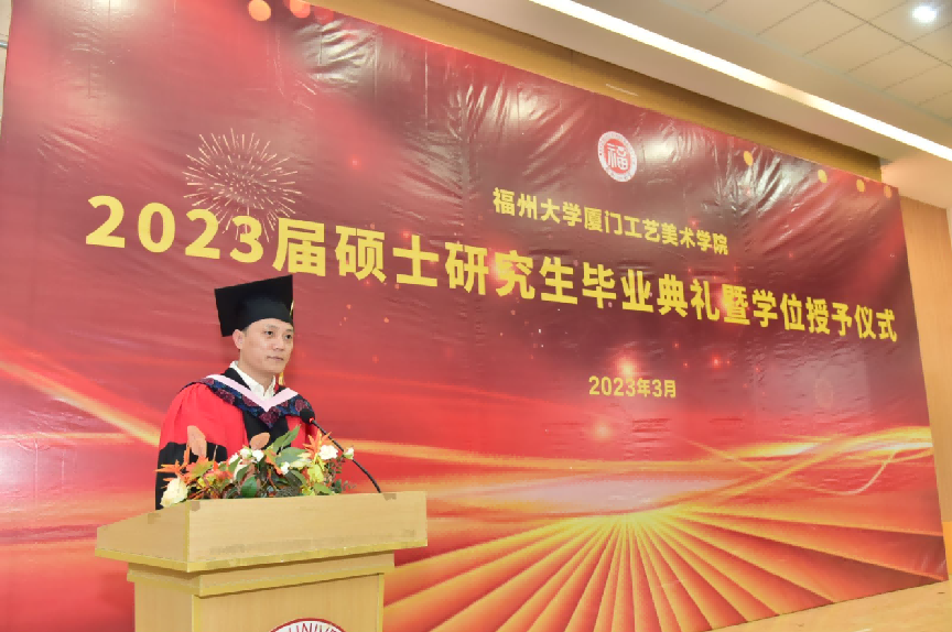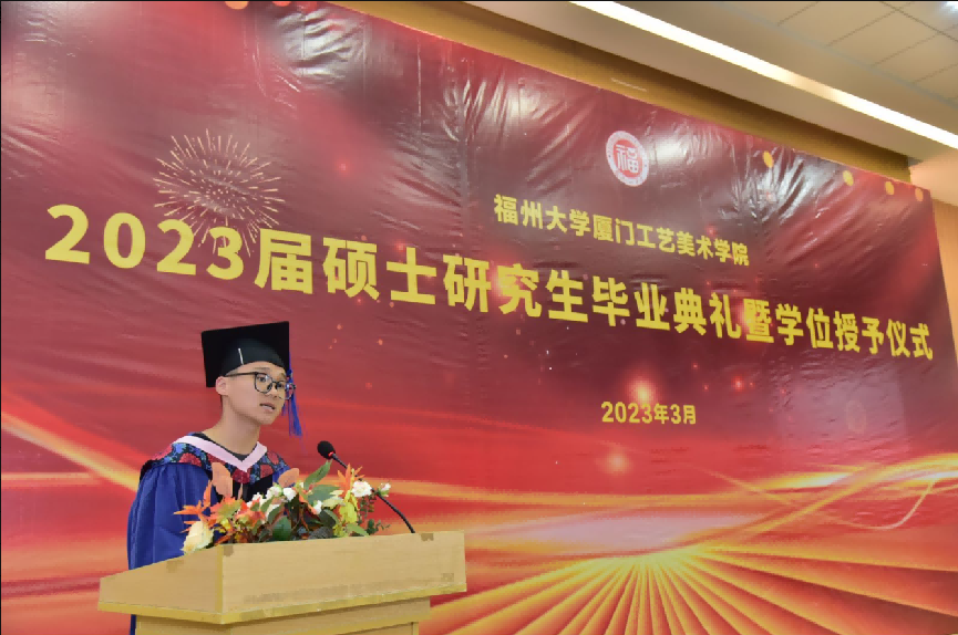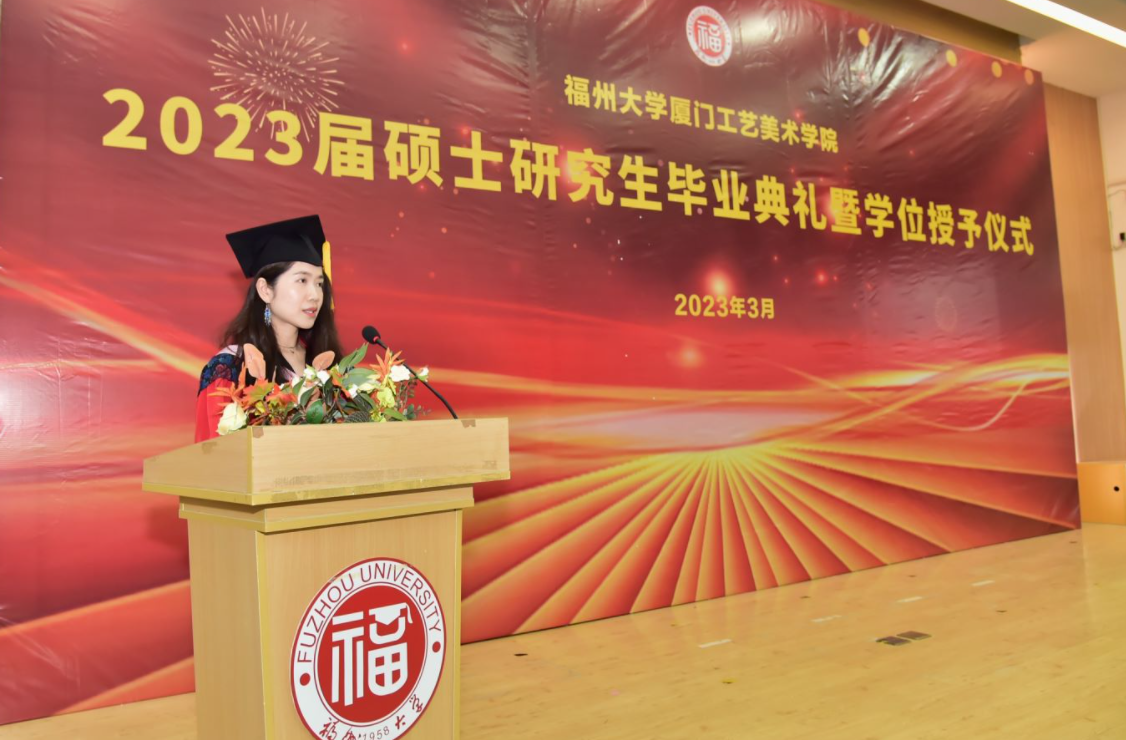 数字媒体艺术系主任黄晓瑜副教授作为导师代表发言,希望同学们能够关注社会、关注人民、关注生活,用自己的才华和创造力为社会做出贡献。家长代表邱龙先生、毕业生代表卢永煌同学先后在毕业典礼上发言,代表2023届肉漫