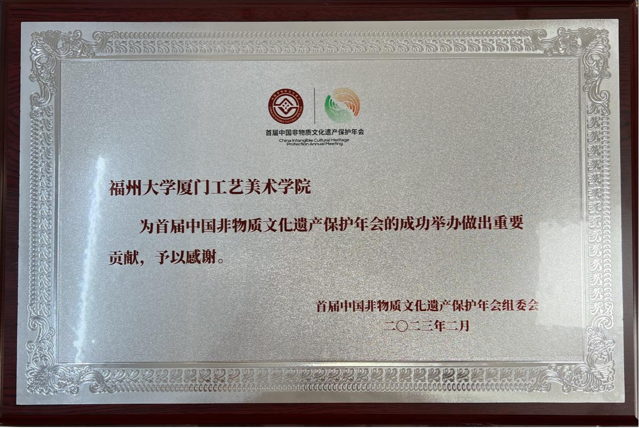为此次首届中国非物质文化遗产保护年会做出的卓越贡献,组委会授予牌匾,予以感谢。