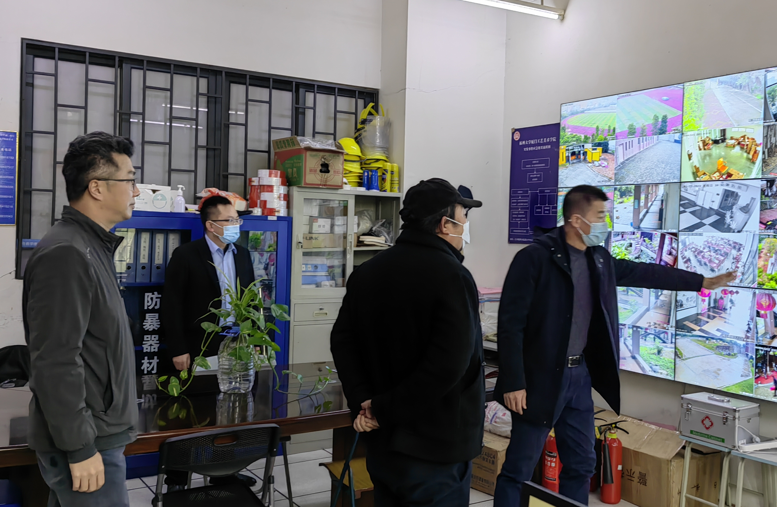 院领导一行实地走访了学院大门岗、侧门岗、东门岗,物业办公室、总值班室以及学生科辅导员值班处等地。每到一处,都停下来与工作人员亲切交谈,感谢他们为保障师生正常工作、学习和生活所作出的贡献,叮嘱相关部门要齐心协力,确保春节期间校园安全,过一个祥和、欢乐的春节。