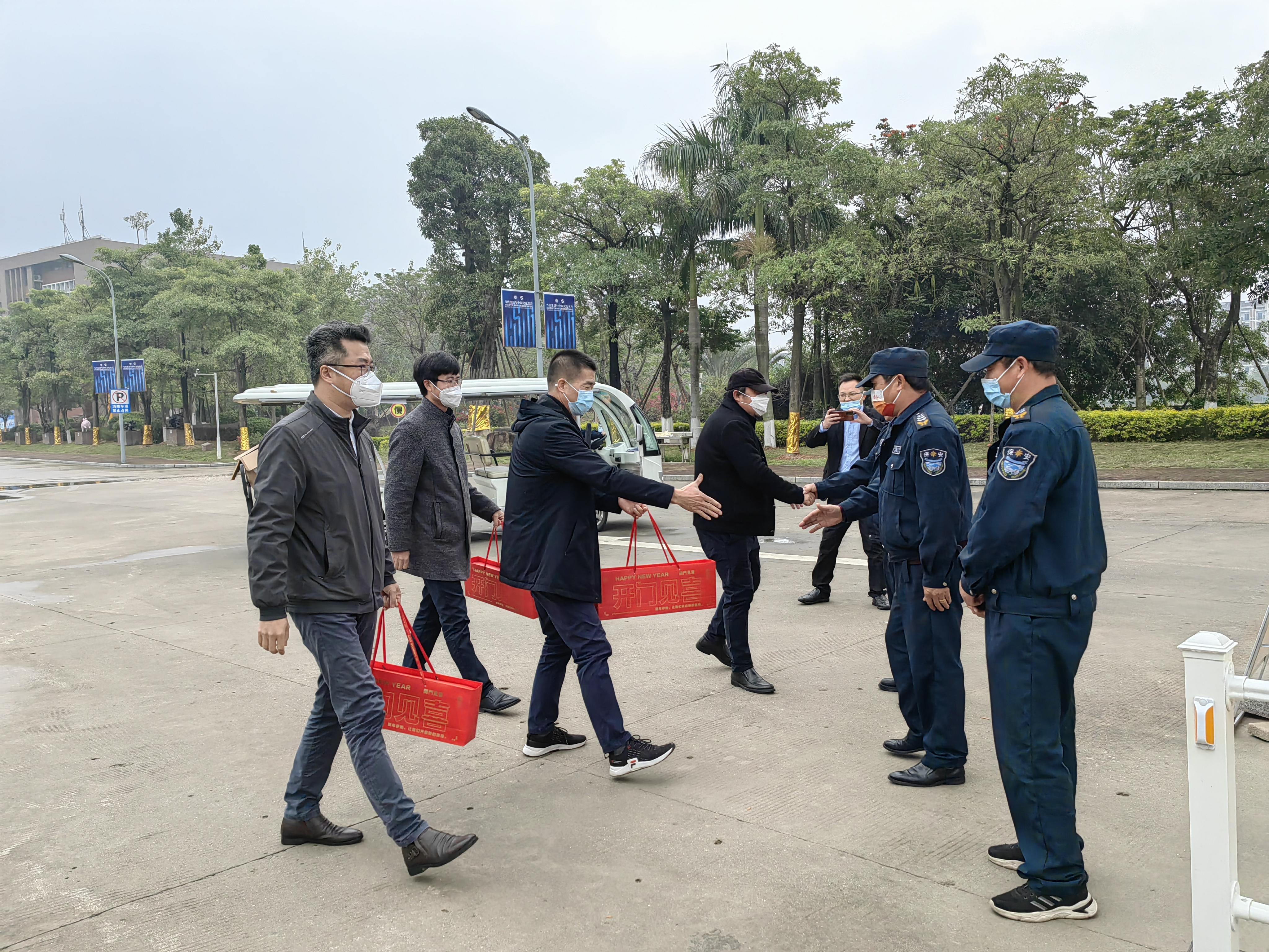 福兔呈祥,福满乾坤!大年初一,学院刘玉龙院长、林旭副书记、工会黄志雄主席在党政办等相关部门的陪同下看望慰问新春佳节坚守工作岗位的工作人员,代表学院向他们表示衷心的感谢和新春的问候。