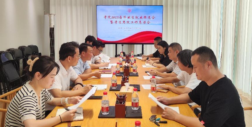 为进一步落实党中央、国务院对高校毕业生就业工作的决策部署,切实促进毕业生高质量就业,开拓学院学生思想政治工作新局面,5月22日下午,学院在书瓦间会议室召开2023届毕业生就业工作推进会暨学生思政工作恳谈会。学院党委副书记林金强出席会议并讲话,学院党委委员、团委书记陈振兴,系主任杨绍浩、陈圣燕、万吉欣、梁青,团委副书记骆锦程,毕业班辅导员出席会议。