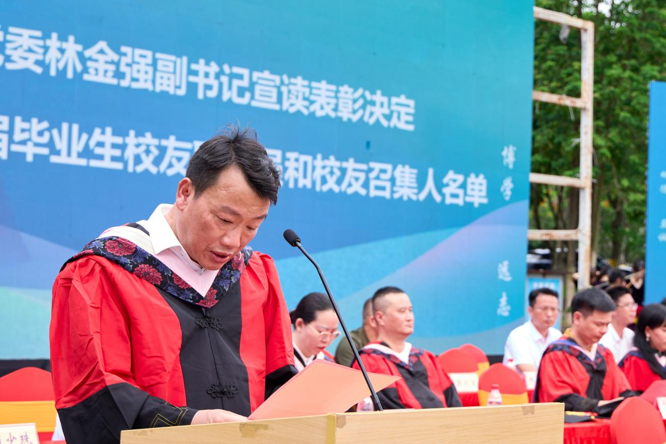 林金强副书记宣读校优秀毕业生、毕业生校友联络员和召集人