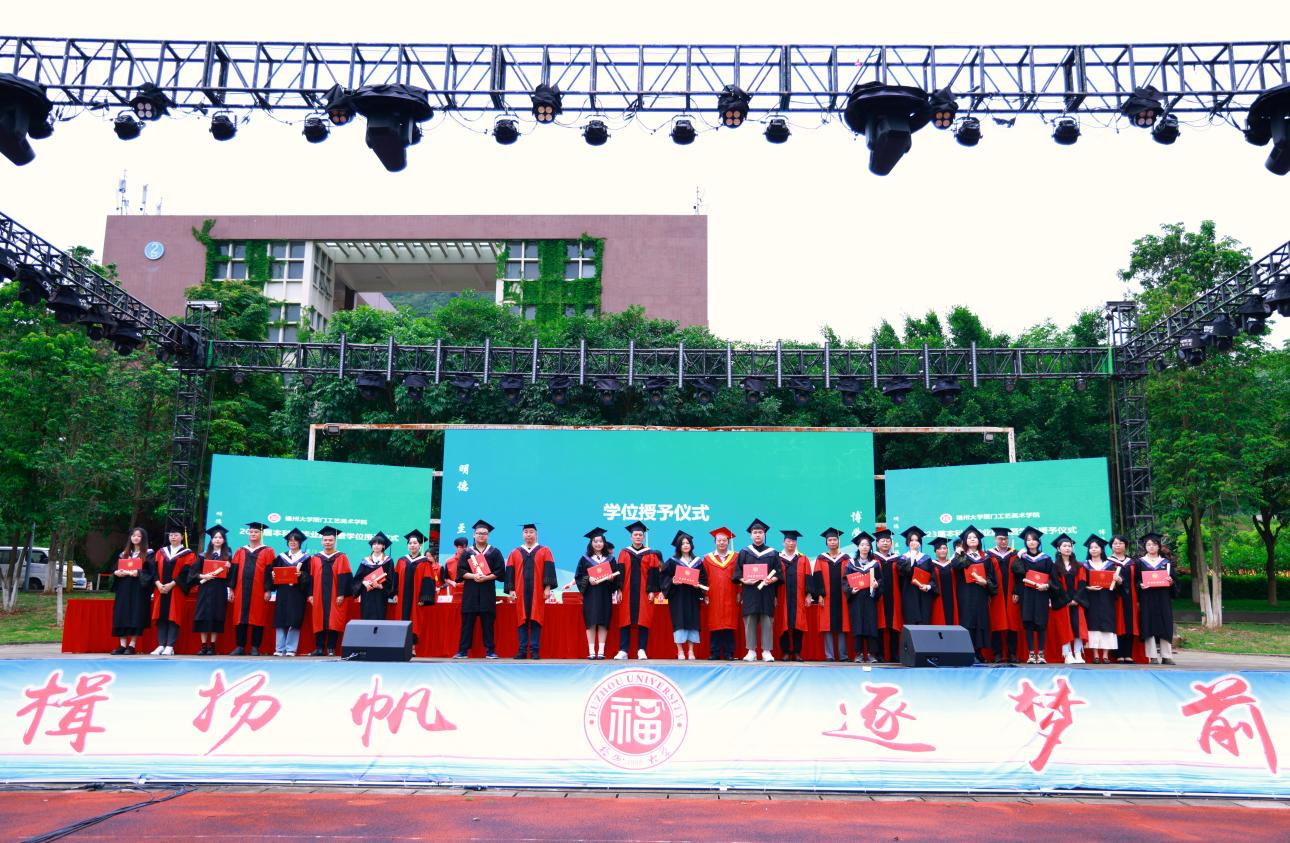 在学位授予仪式中,学院学位委员会委员分别为2023届本科毕业生颁发学位证书、执拨穗礼,并合影留念。