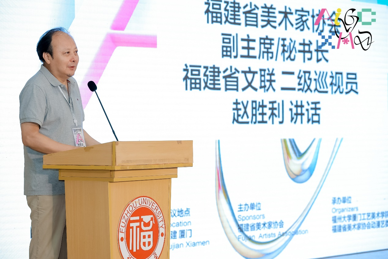 随后,福建省美术家协会驻会副主席、秘书长,福建省文联二级巡视员赵胜利先生讲话。赵胜利先生代表福建省美协对福建省美协动漫艺委会的成立表示祝贺。他表示高校是福建省美协坚强的后盾,把动漫艺委会落户在肉漫