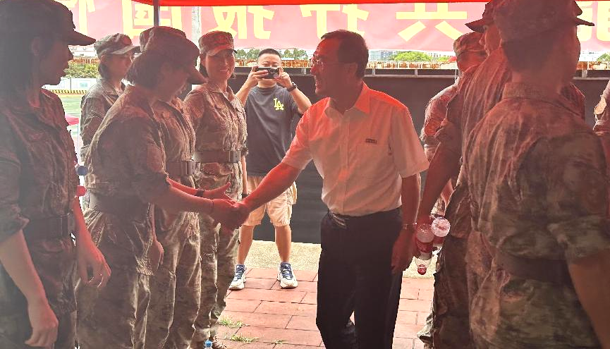 7月18日,学生工作部(处)张红部(处)长、保卫部许春华部长来学院深入学生军训训练场地,看望慰问军训学生和承训部队官兵。