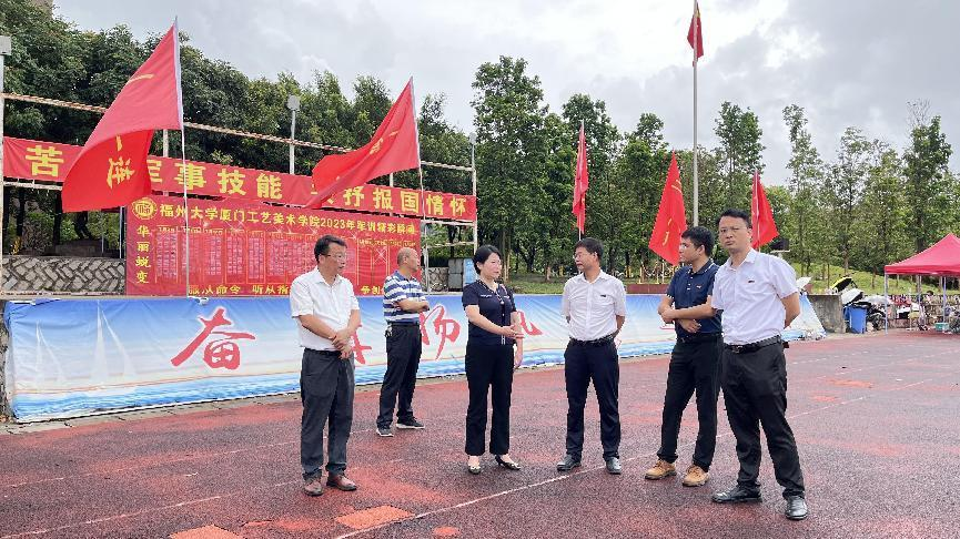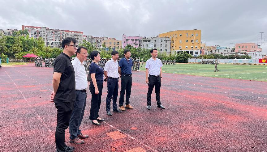在训练场地,张红部(处)长、许春华部长认真听取了学院李礼建书记和林金强副书记对军训工作的汇报,详细了解了军训中的军事训练安排、安全保障、医疗卫生等工作的开展情况。随后,深入各个训练连队实地看望了教官和参训同学,并对同学们展现出的良好精神面貌给予高度肯定。