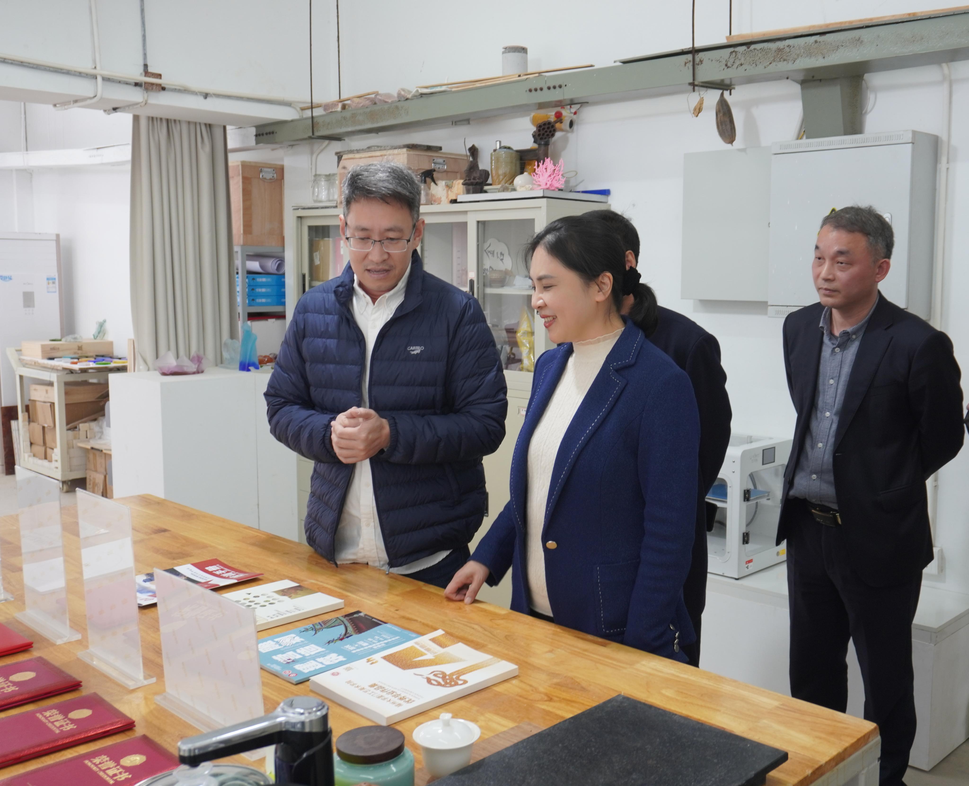 会前,吴明红校长、张星副书记等一行来到在建的图展中心工地了解项目进展情况,还参观了工艺美术系实验室和美术馆等。