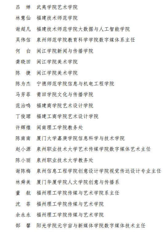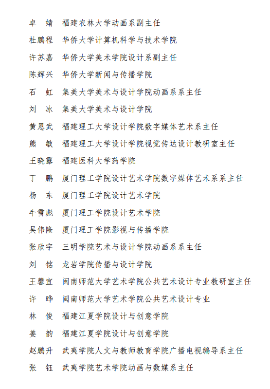 附录,未来设计师·全国高校数字艺术设计大赛福建赛区组委会完整名单