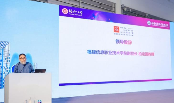 随后,福建信息职业技术学院副校长柏定国教授与全国高校数字艺术设计大赛组委会郭清胜秘书长分别致辞,详细介绍了福建信息职业技术学院的情况以及未来设计师·全国高校数字艺术设计大赛的国内外影响力,欢迎各高校积极参与。