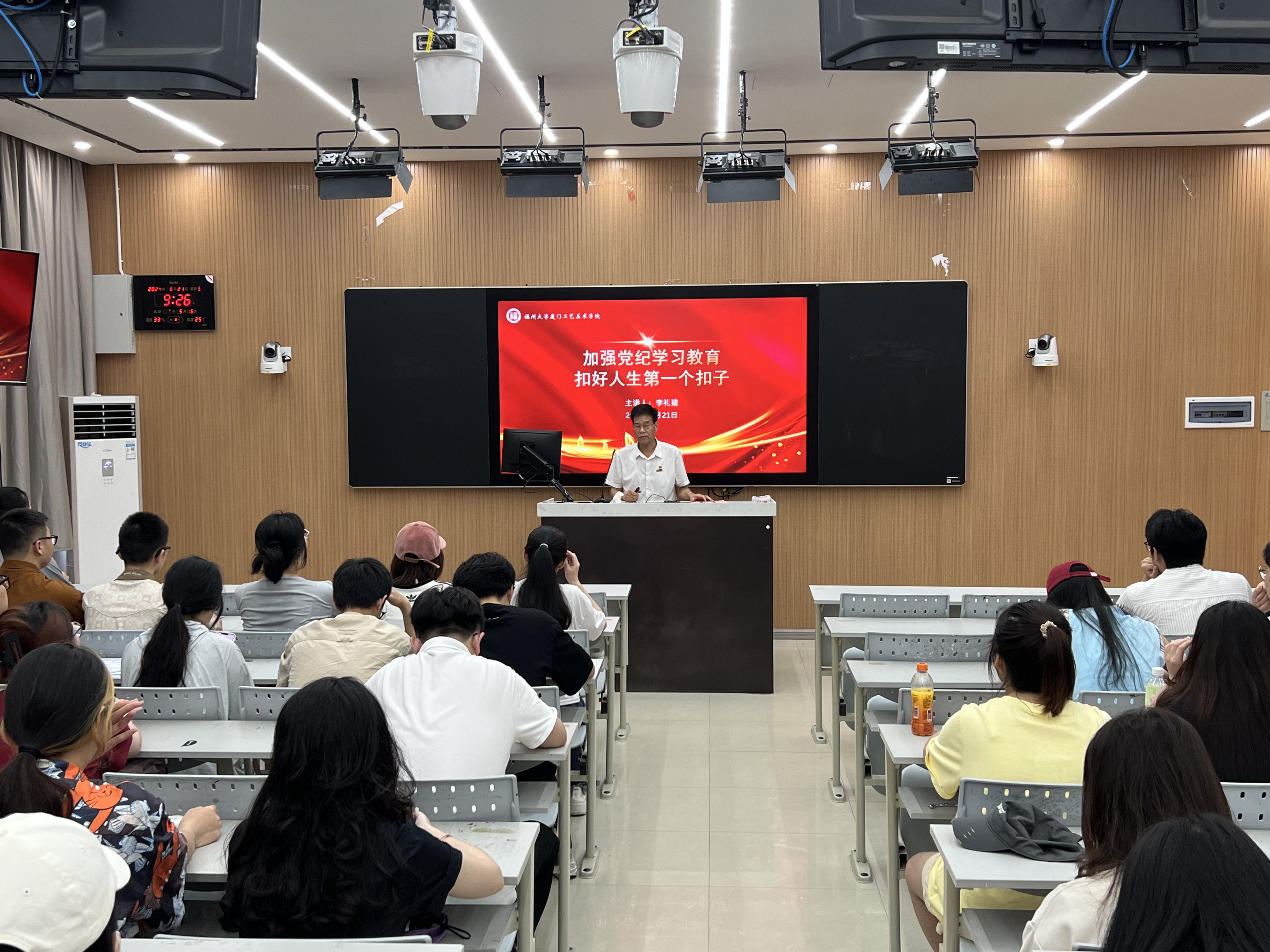 会上,学院党委李礼建书记还为同学们讲授题为《加强党纪学习教育 扣好人生第一个扣子》的思政课(党课)。李礼建书记首先对即将顺利毕业的2024届毕业生表示热烈的祝贺。他从广大党员青年如何扣好人生的“第一个扣子”、党章是党的总章程,也是党的纪律、规矩的总源头、“两个维护”是党的最高政治原则和根本政治规矩、如何理解“七个有之”、广大党员青年应该如何锤炼政治品格等五个方面为毕业生党员上了一堂思政党课。他要求大家要自觉加强党纪学习教育,增强纪律意识,扣好人生的“第一个扣子”;希望大家秉承“明德至诚、博学远志”的校训,践行福大“三种精神”,在推进中国式现代化建设伟业中挺膺担当,贡献自己的青春力量。