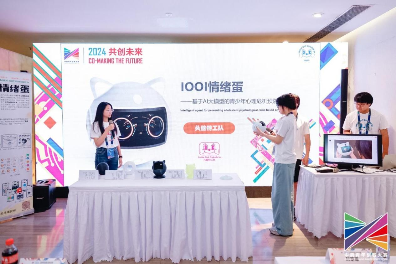 (二等奖项目《IOOI情绪蛋》团队成员正在进行路演答辩)