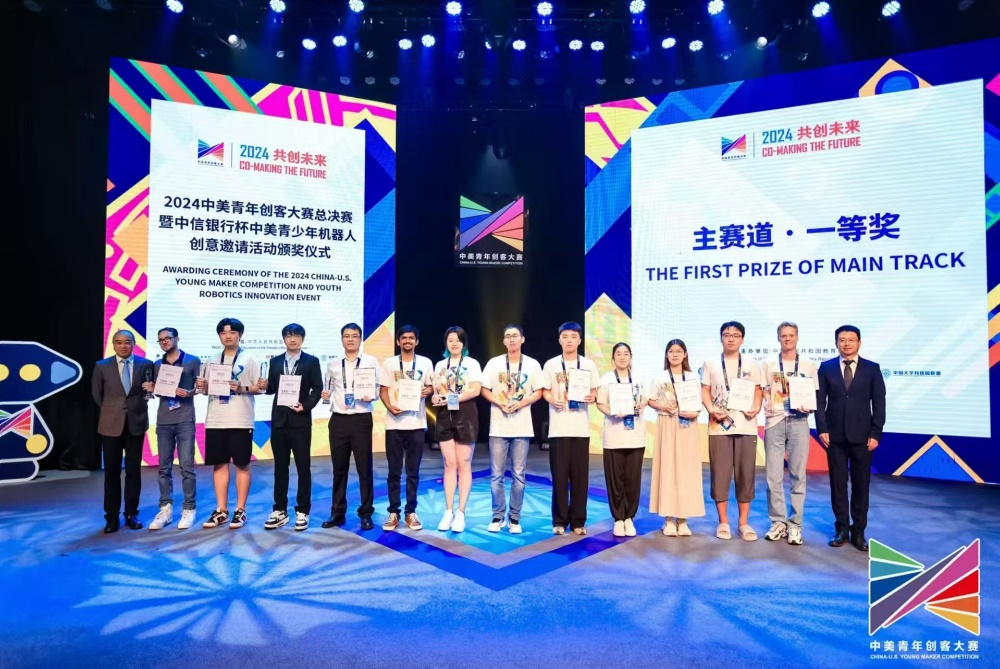 8月9日至12日,由中华人民共和国教育部主办的2024年中美青年创客大赛总决赛及系列活动在北京中华世纪坛成功举办。8月12日,教育部国际合作与交流司副司长陈大立先生、美国驻华大使馆公使衔参赞费曼舒(Mary Sue Fields)女士、英特尔公司副总裁/中国公司事务总经理周兵先生等出席总决赛颁奖仪式并为获奖选手颁奖。