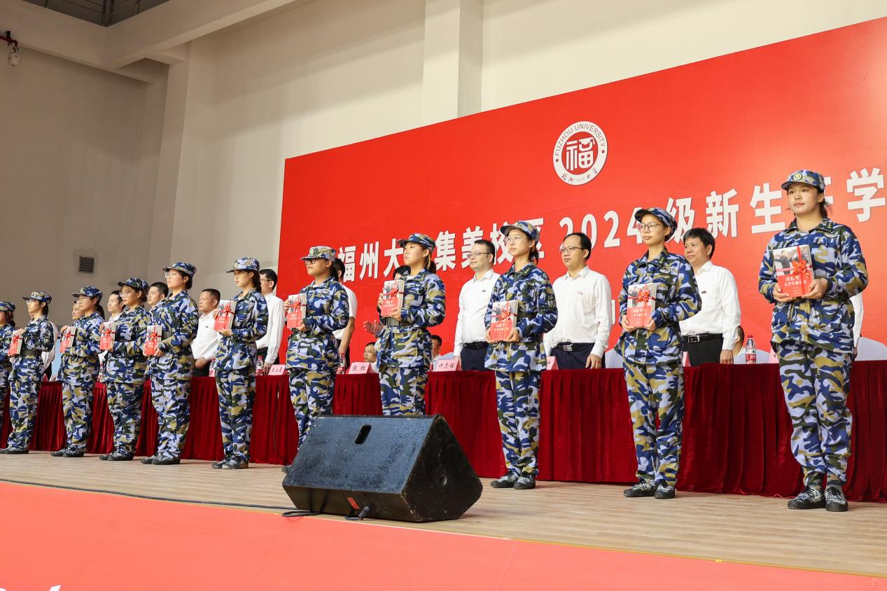 典礼伊始,校领导和各机关部处领导为新生代表赠书,欢迎新同学的到来,勉励新同学多读书。