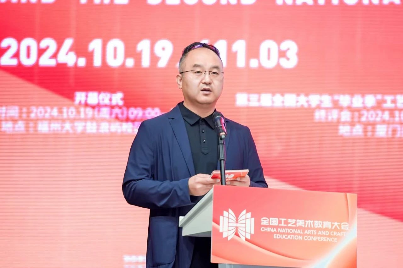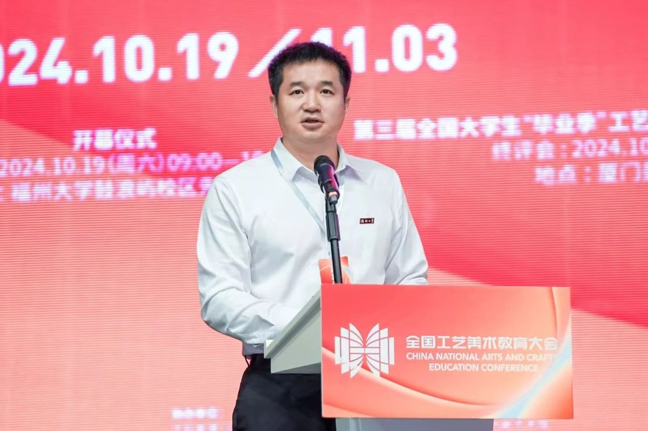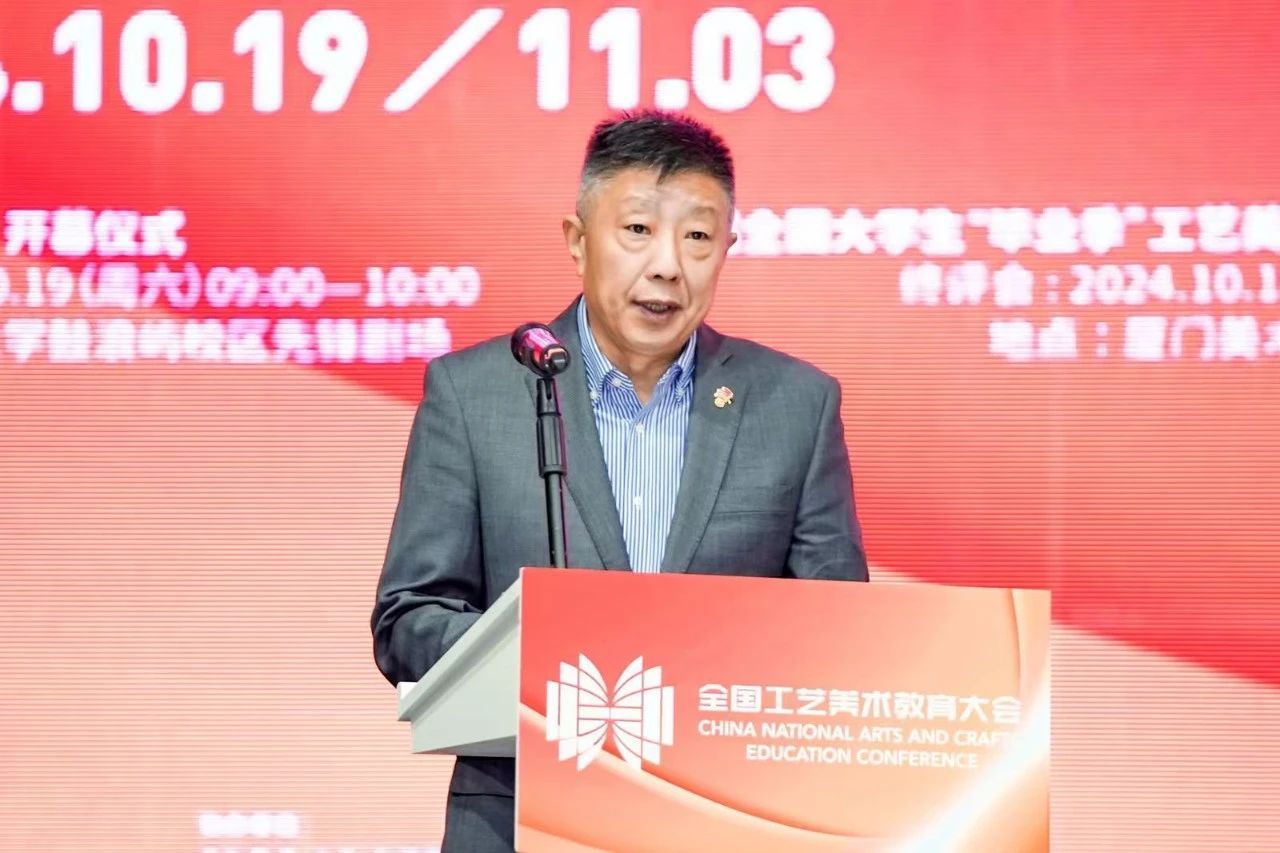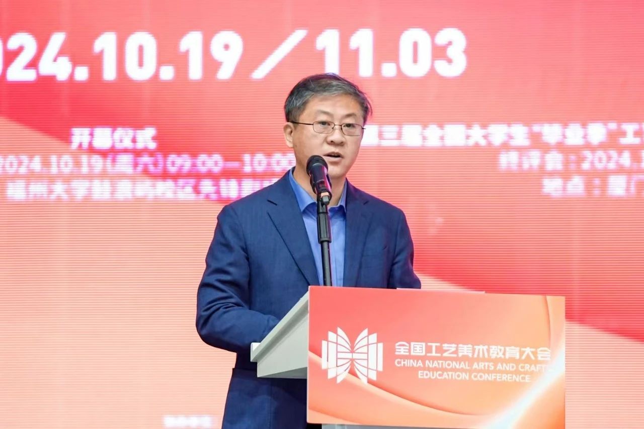 一直站在适应时代发展的潮头,积极推动中国工艺美术教育事业发展,以培养堪当民族复兴重任的时代新人为核心,创作出了一大批反映人民生活和国家形象的精品力作。他指出,工艺美术是中华民族文化和艺术宝库中的一颗璀璨明珠,蕴含着中华民族的思想智慧和实践经验,品种和技艺享誉全球。新时代工艺美术的发展需要积极融入新质生产力的理念,不断扩展工艺美术内涵和外延,以符合新发展理念所追求的先进生产力质态。因此,探索工艺美术教育发展新思路和新时代工艺美术的当代价值与发展方向,更好地发挥美育化人的功能和作用,展现中国工艺美术教育事业新气象,是我们此次办会的初衷。他相信,通过举办国际工艺美术教育院校长学术交流会、鹭岛学术对话等一系列活动,为各院校提供学术交流和对话的平台,既能凝聚共识,又能在不同院校的差异化特色中进行思想碰撞,汲取新的灵感,凝聚成推动教育前行的强大智慧力量。