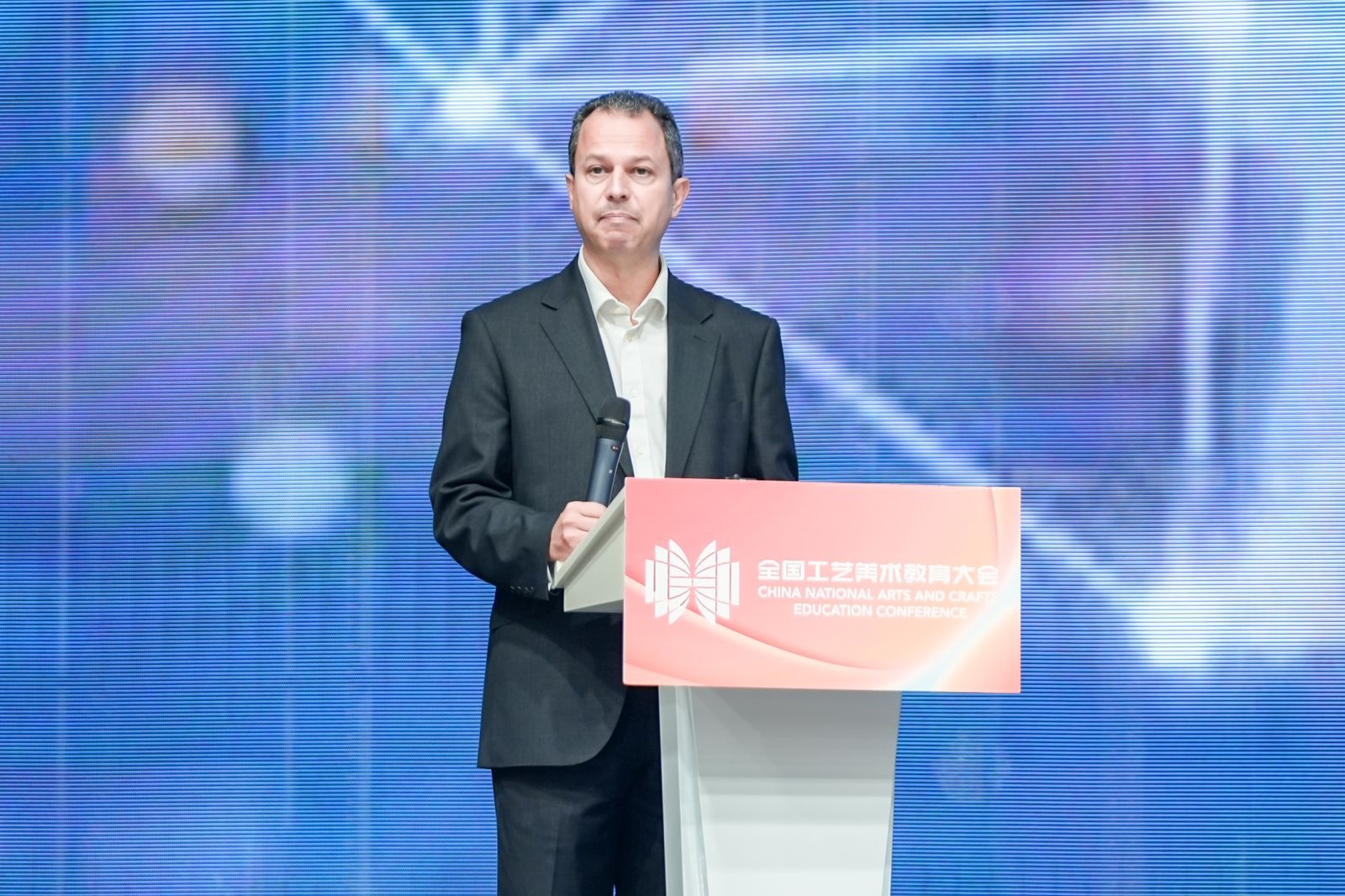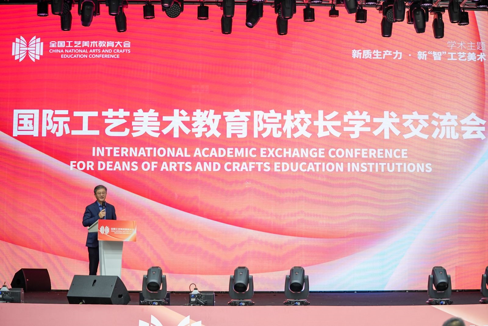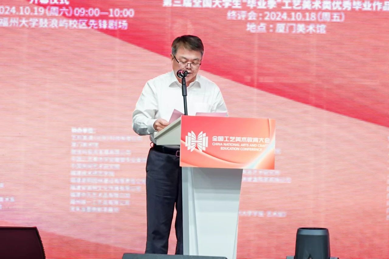 一直站在适应时代发展的潮头,积极推动中国工艺美术教育事业发展,以培养堪当民族复兴重任的时代新人为核心,创作出了一大批反映人民生活和国家形象的精品力作。他指出,工艺美术是中华民族文化和艺术宝库中的一颗璀璨明珠,蕴含着中华民族的思想智慧和实践经验,品种和技艺享誉全球。新时代工艺美术的发展需要积极融入新质生产力的理念,不断扩展工艺美术内涵和外延,以符合新发展理念所追求的先进生产力质态。因此,探索工艺美术教育发展新思路和新时代工艺美术的当代价值与发展方向,更好地发挥美育化人的功能和作用,展现中国工艺美术教育事业新气象,是我们此次办会的初衷。他相信,通过举办国际工艺美术教育院校长学术交流会、鹭岛学术对话等一系列活动,为各院校提供学术交流和对话的平台,既能凝聚共识,又能在不同院校的差异化特色中进行思想碰撞,汲取新的灵感,凝聚成推动教育前行的强大智慧力量。
