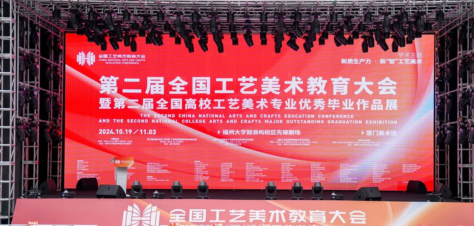 学报·艺术版》提供给学术支持。大会旨在贯彻落实党的二十大精神,强化现代化建设工艺美术人才支撑,实现中国式现代化工艺美术教育高质量发展。大会活动时间为2024年10月17日至10月20日。活动期间还在厦门美术馆举办第二届全国高校工艺美术教育专业优秀毕业作品展和第三届全国大学生“毕业季”工艺美术类优秀毕业作品大赛。