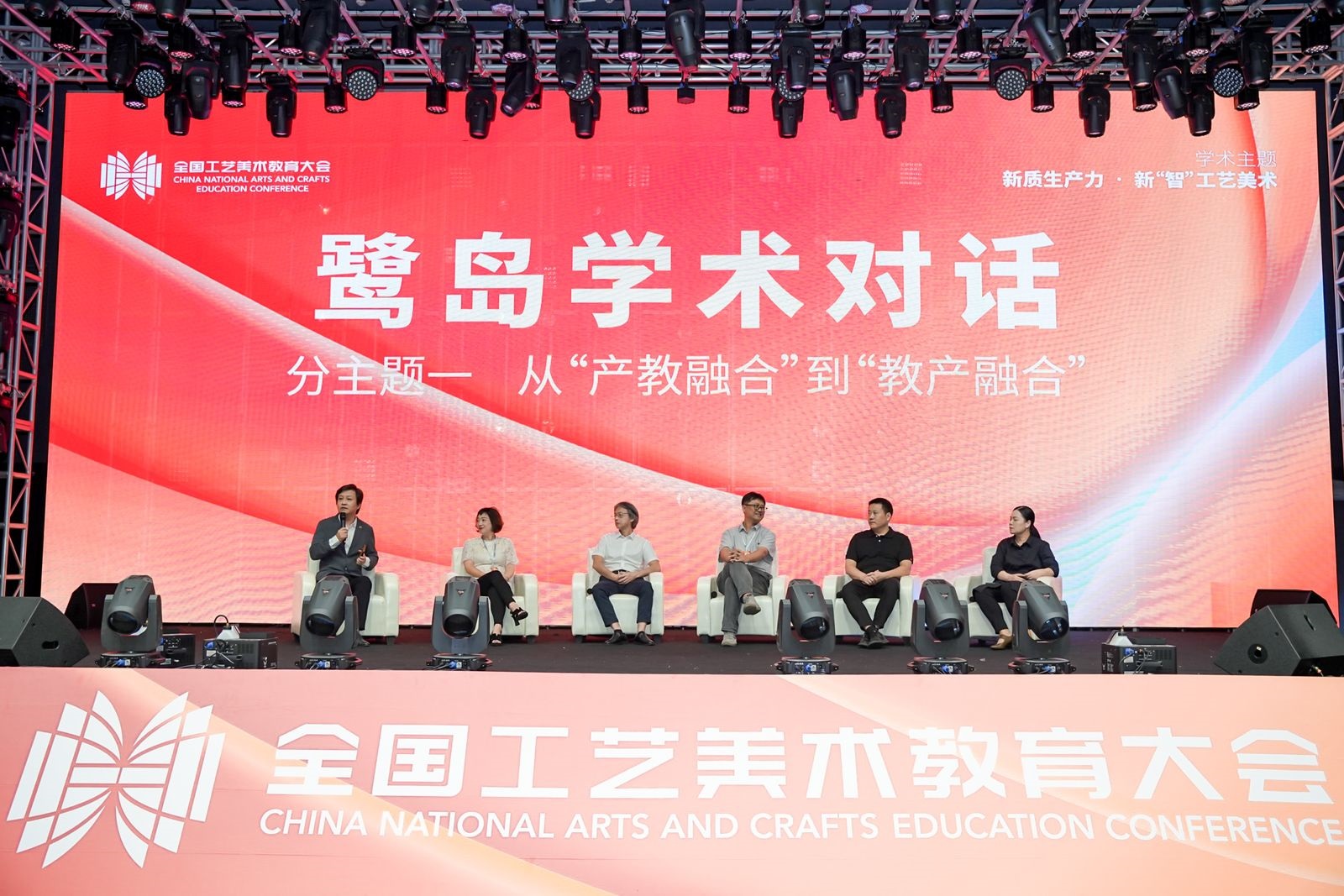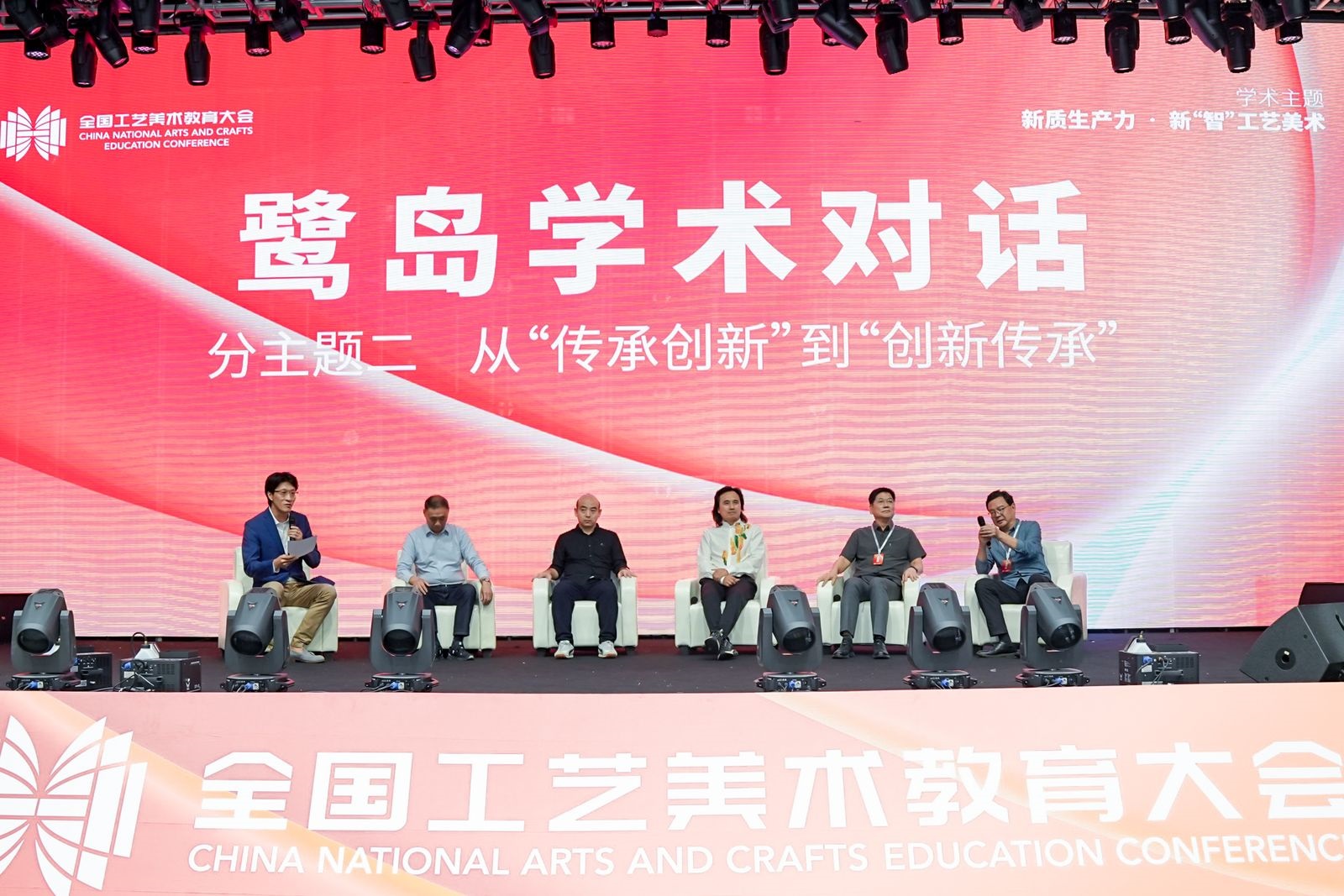 “鹭岛学术对话”分为上下半场,广州美术学院工艺美术学院院长、中国工艺美术学会教育工作委员会副主任齐喆和清华大学美术学院工艺美术系副主任、中国工艺美术学会教育工作委员会副秘书长李静分别主持上半场活动,与会领导、专家学者围绕从产教融合到教产融合、从传承创新到创新传承主题先后发言,认真开展学术对话。
